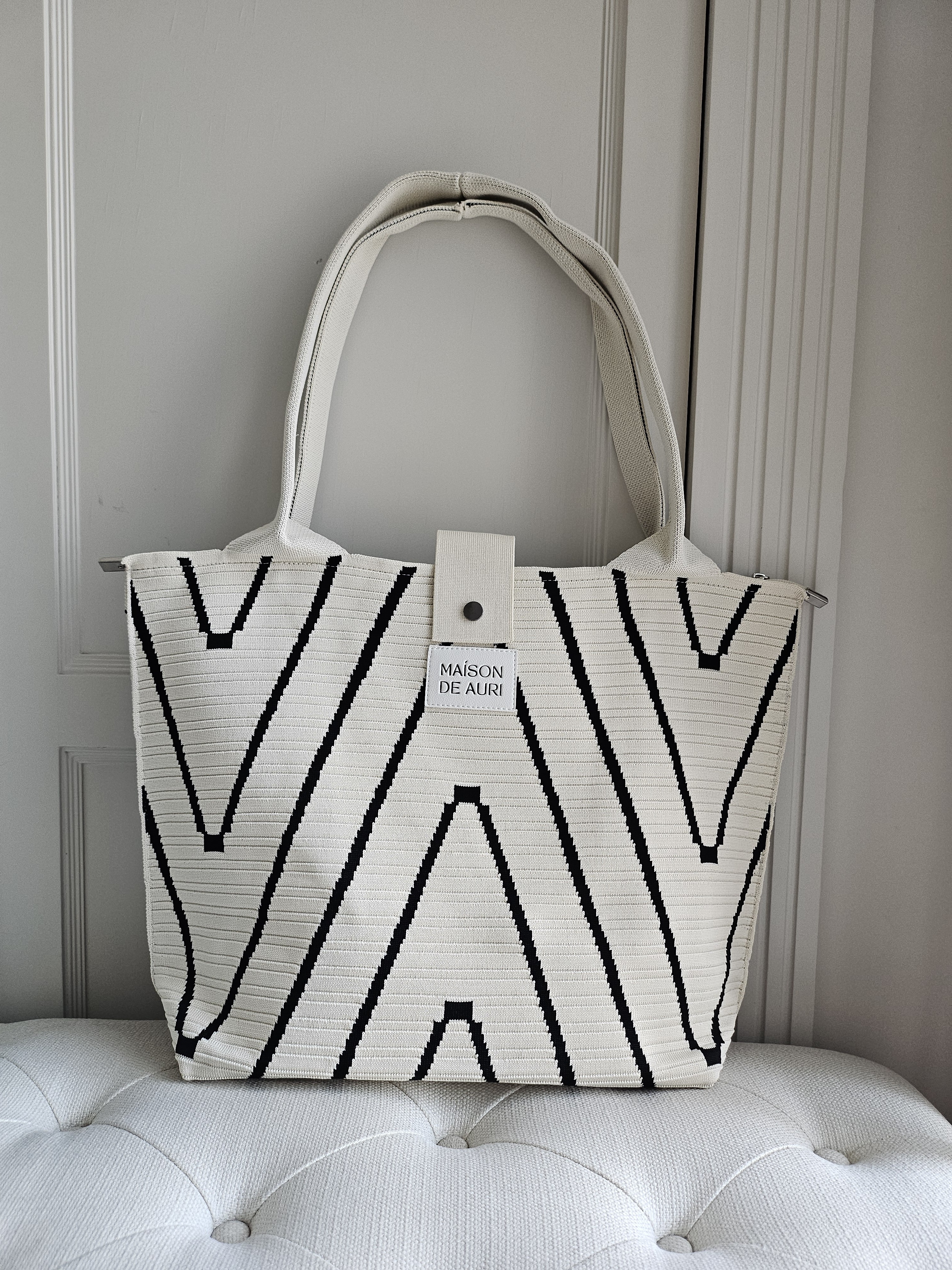 象牙白與經典黑線交錯出宛如建築立面般的視覺張力,簡約卻充滿氣勢,致敬每一位在生活中築夢的你。