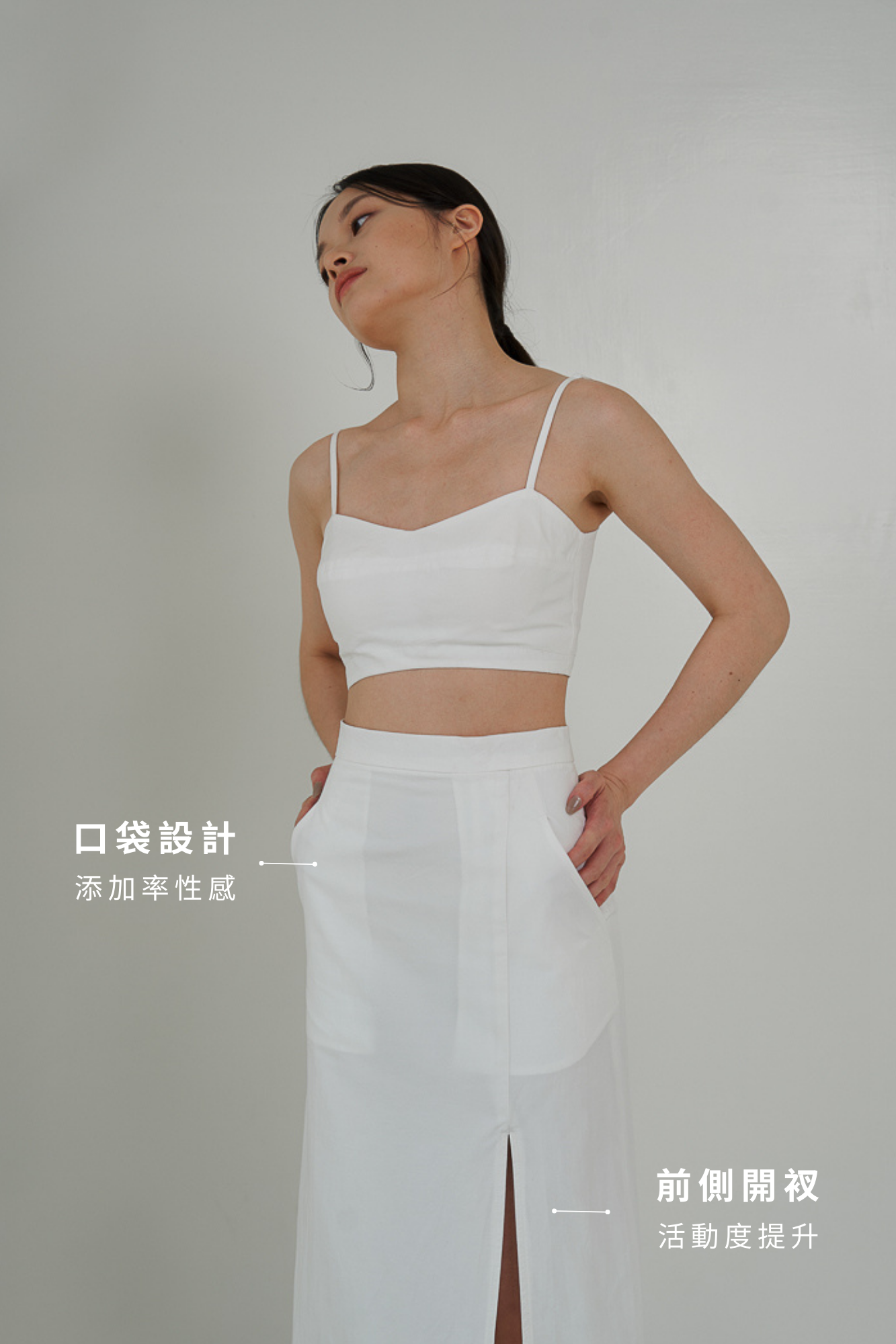 性感俐落|正側面裙襬開岔,搭配口袋設計