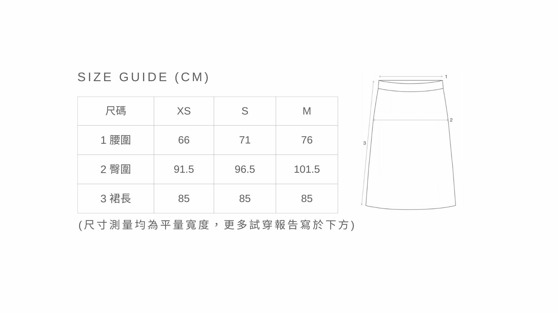 (模特兒及尺寸資訊寫於下方,尺寸測量均為平量寬度)