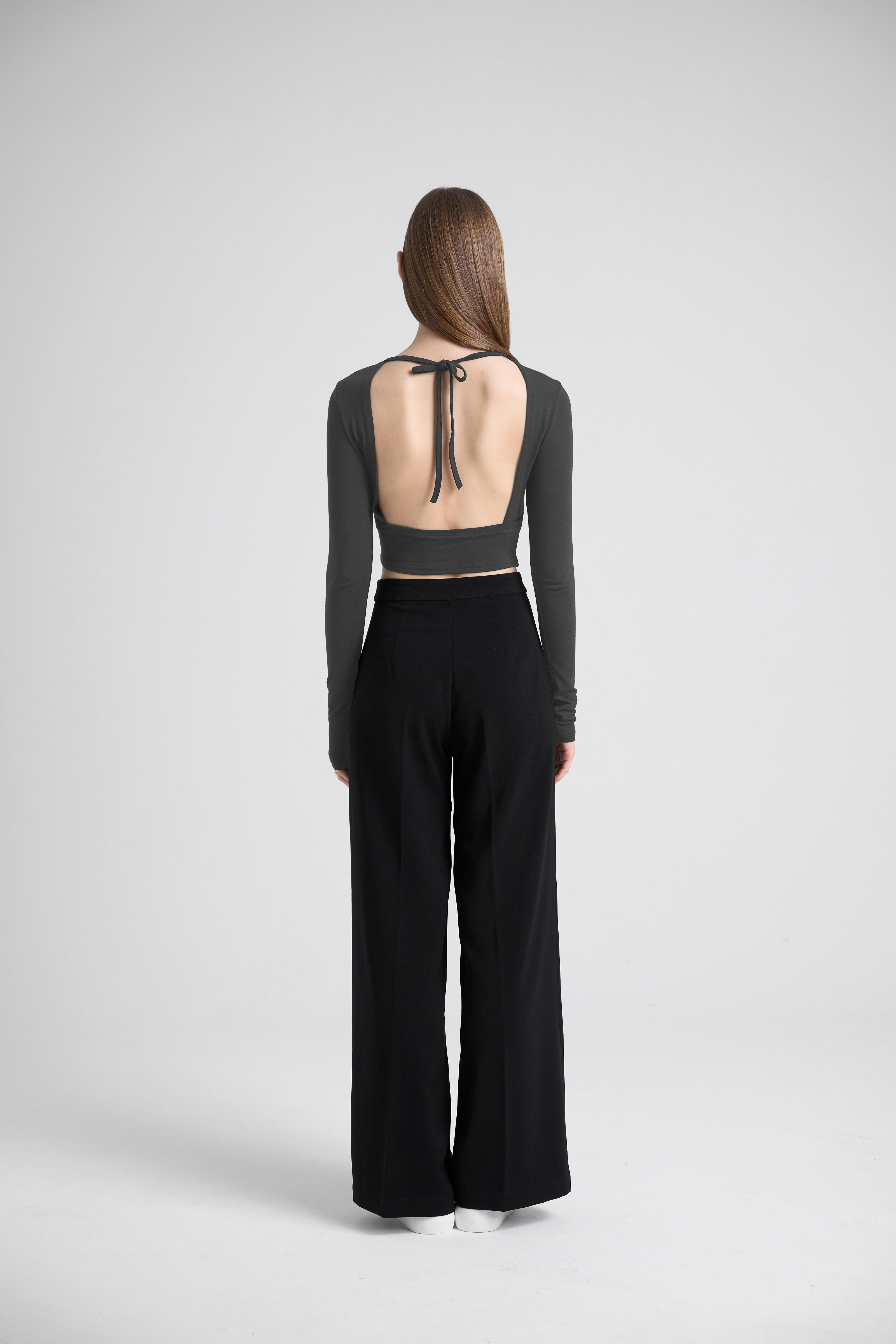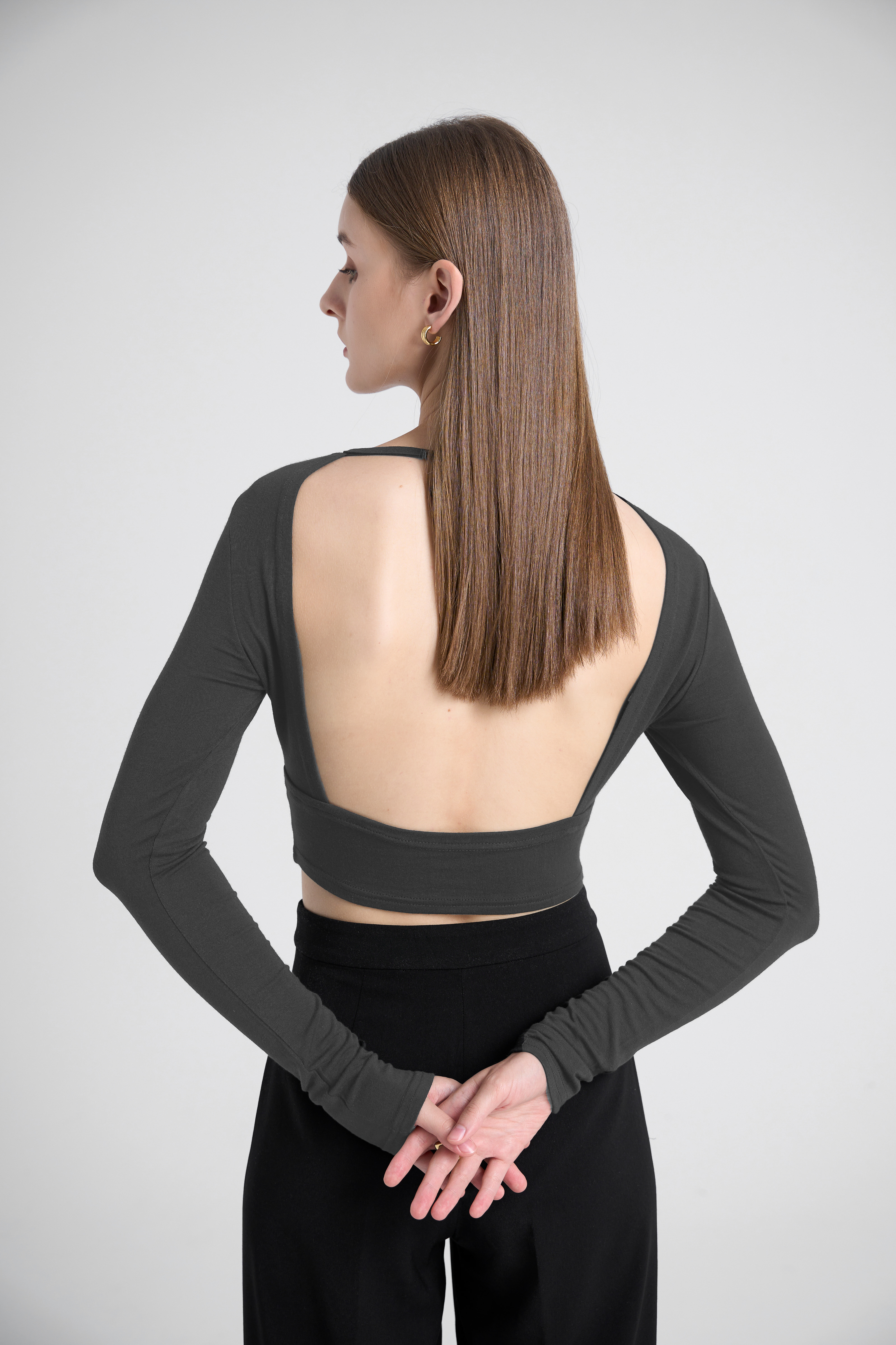 Backless Modal Bra Crop Top - Iron Gray