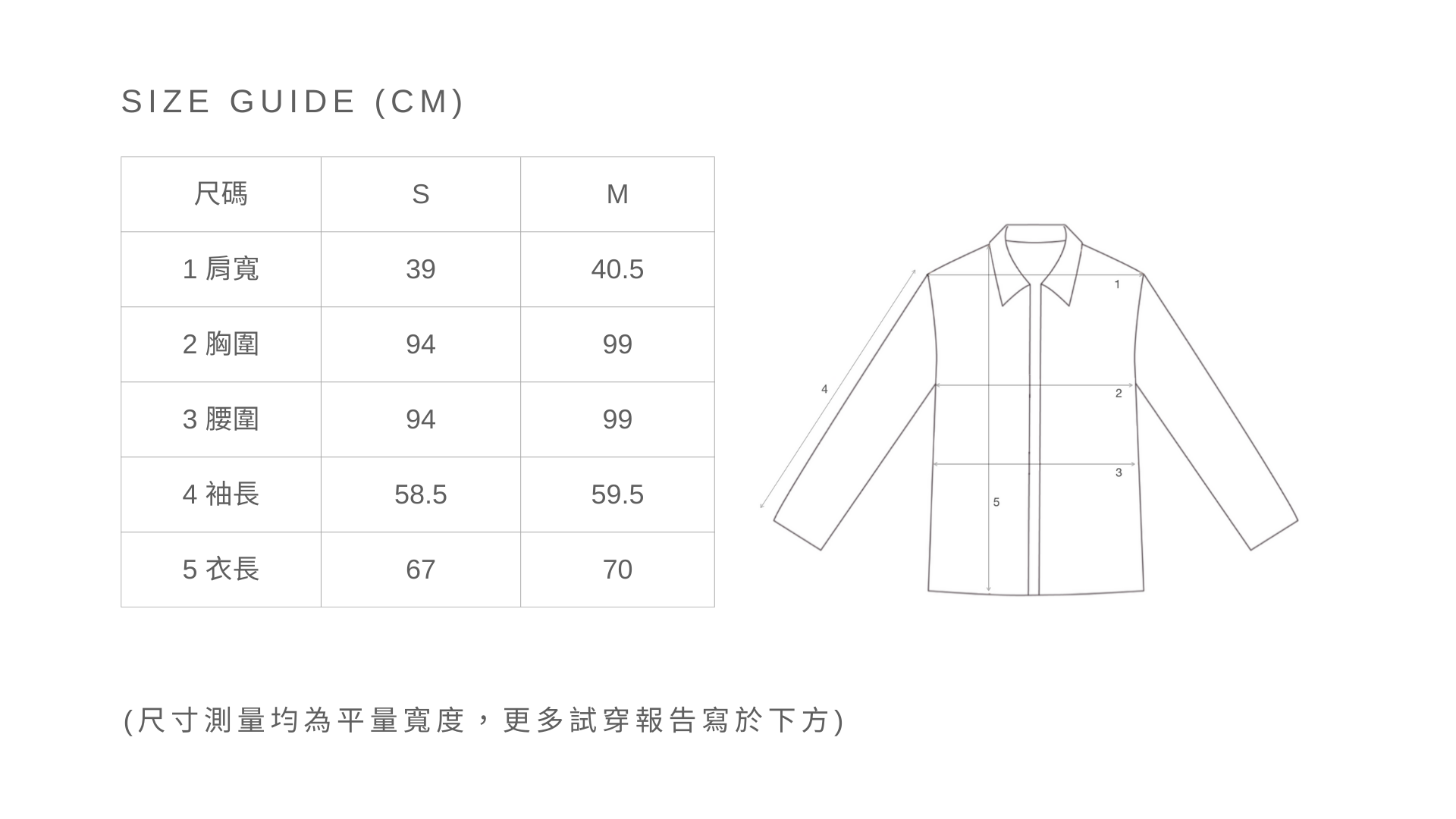 (模特兒及尺寸資訊寫於下方,尺寸測量均為平量寬度)