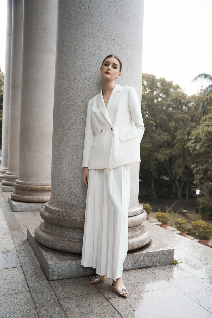 質感細節|同色系主輔料&隱藏式前襟鈕扣