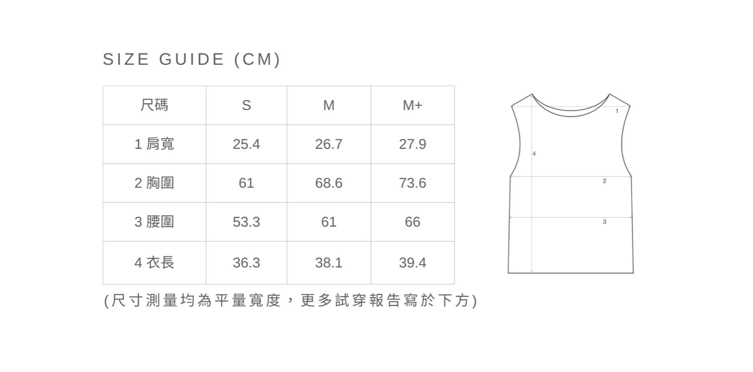 (模特兒及尺寸資訊寫於下方,尺寸測量均為平量寬度)