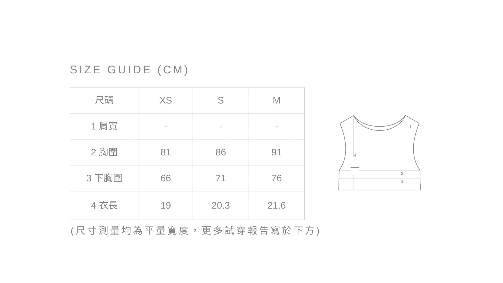(模特兒及尺寸資訊寫於下方,尺寸測量均為平量寬度)