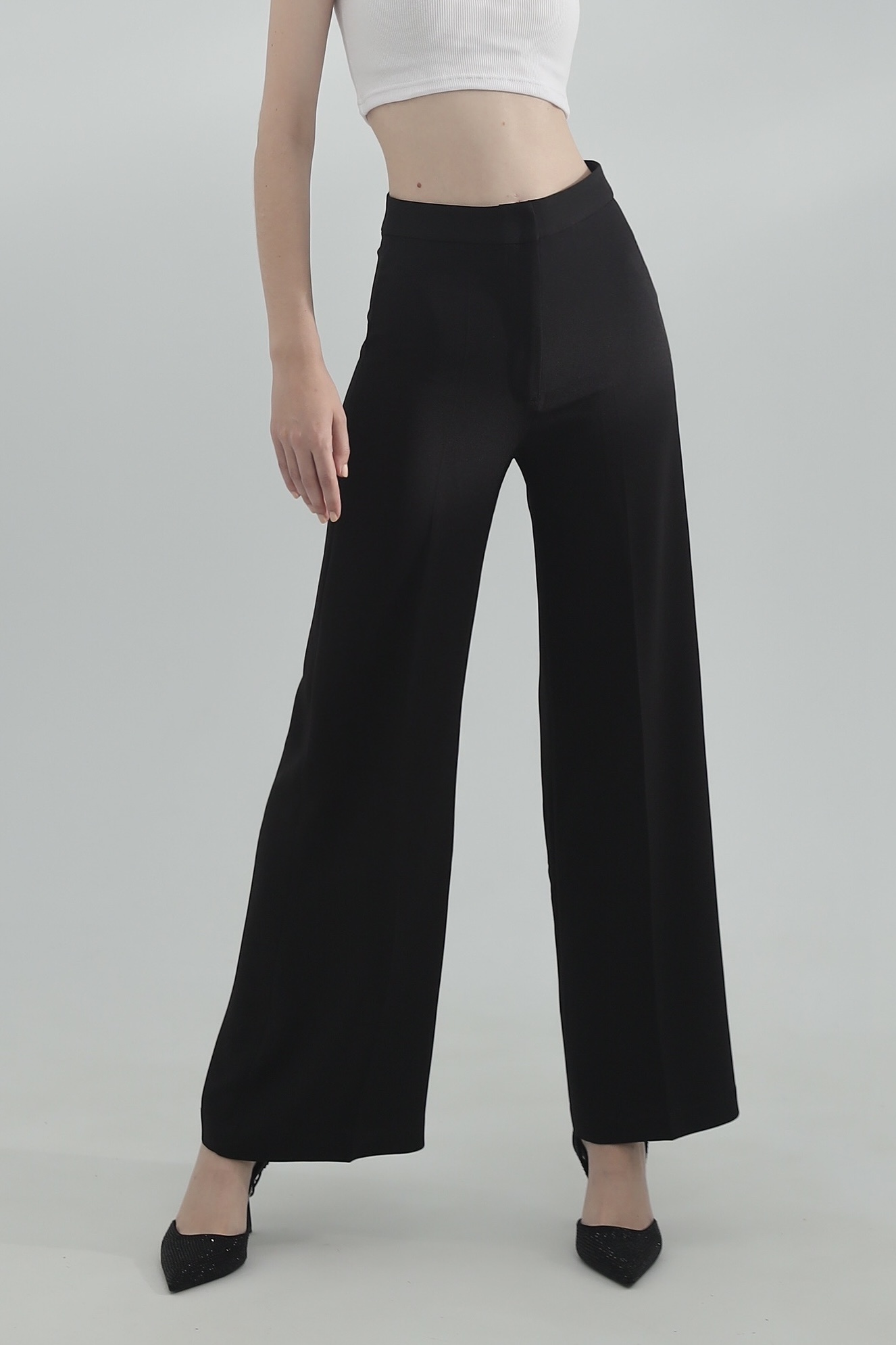 High Waist Tailored Trousers - Black