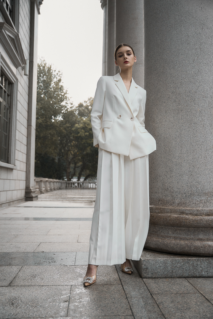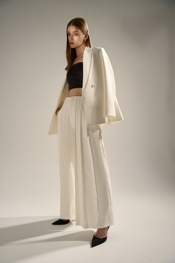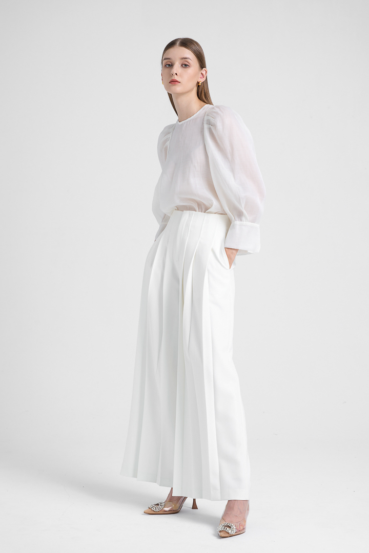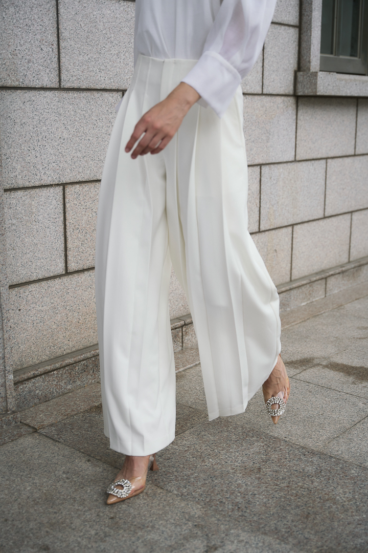 High Waisted Pleated Pants - White