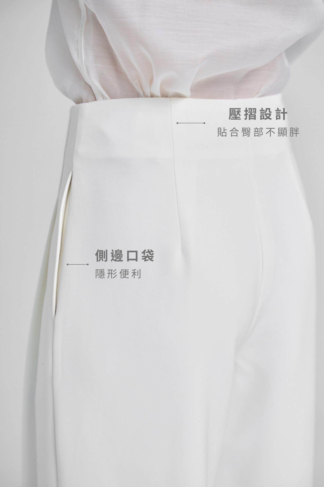 假胯寬友善|側邊剪裁修飾腰臀線條,版型俐落顯瘦