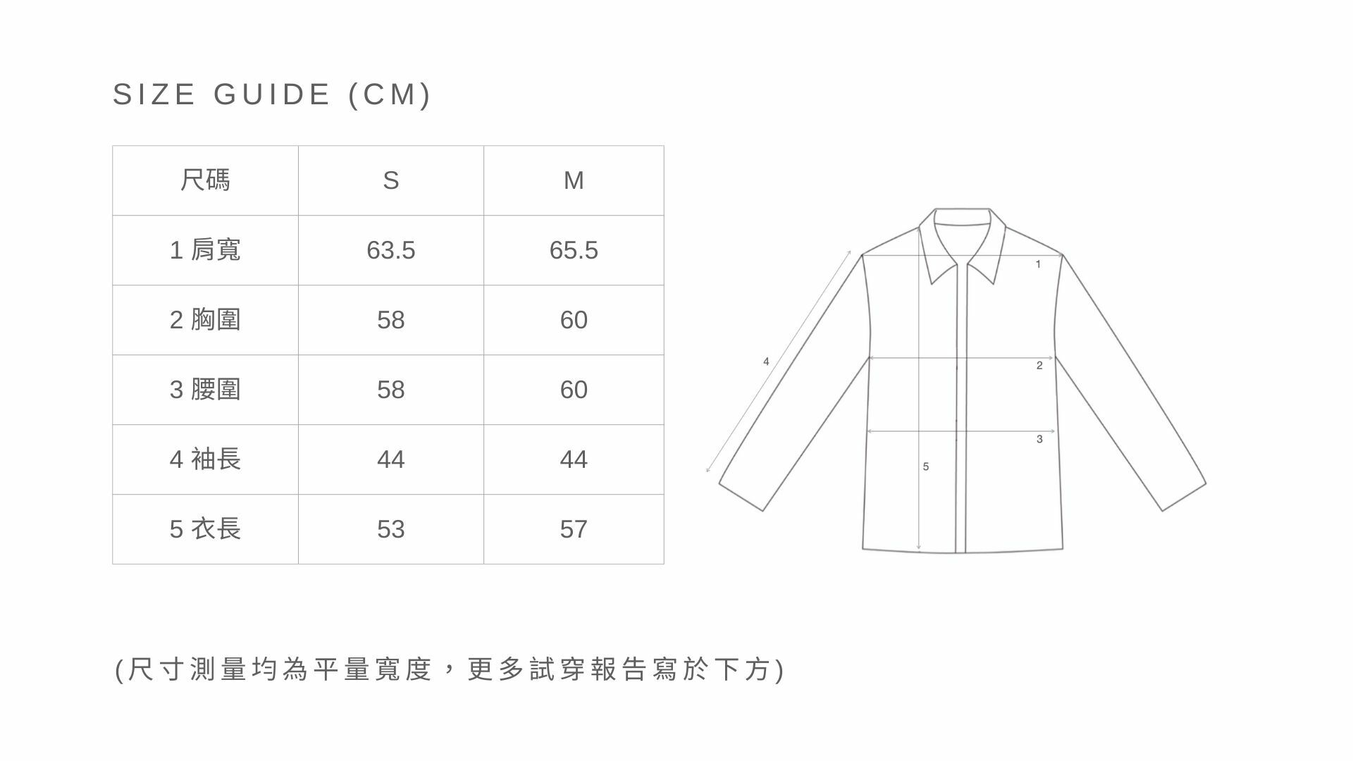 (模特兒及尺寸資訊寫於下方,尺寸測量均為平量寬度)