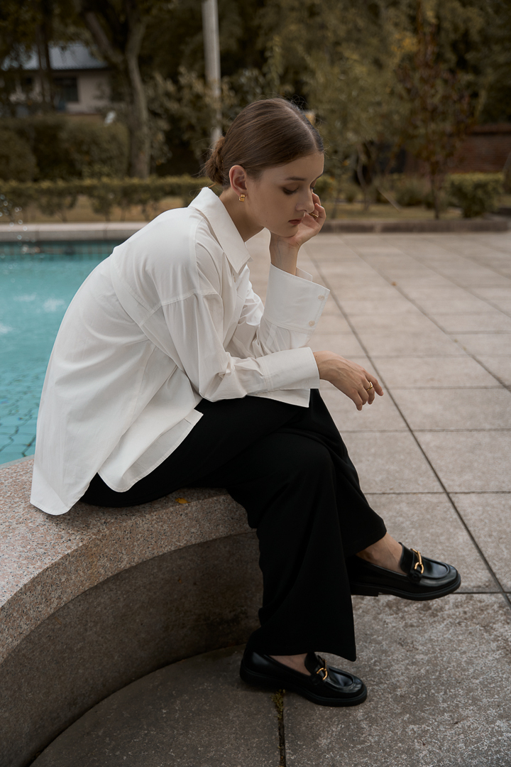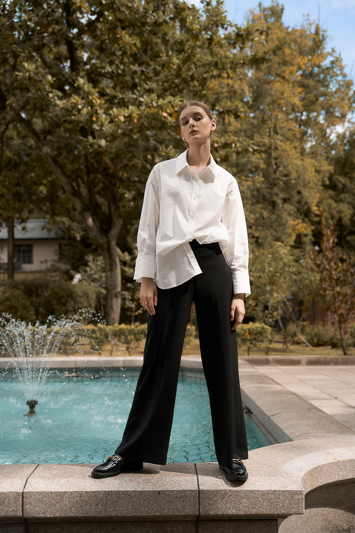 中性俐落|中型尖領搭配前襟單排鈕扣