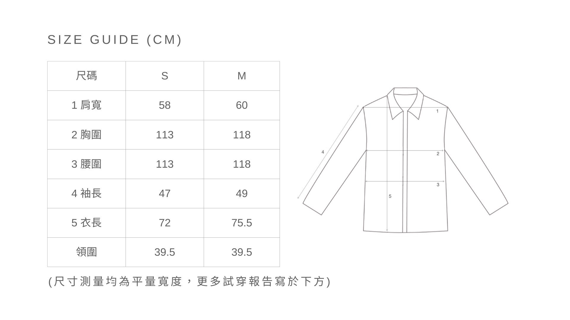 (模特兒及尺寸資訊寫於下方,尺寸測量均為平量寬度)