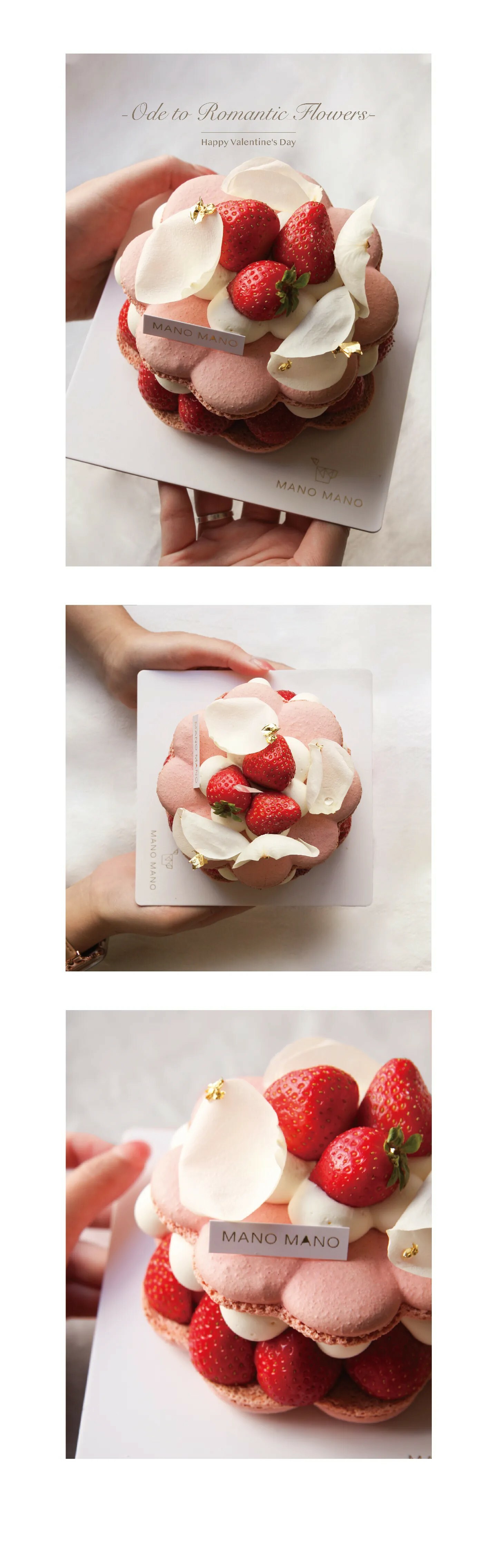 完美融合了多層次的馬卡龍口感與優雅的花卉裝飾,呈現出甜美且精緻的視覺效果。每一口都帶來濃郁的法式甜點風味,適合為任何浪漫場合增添甜蜜氣息。