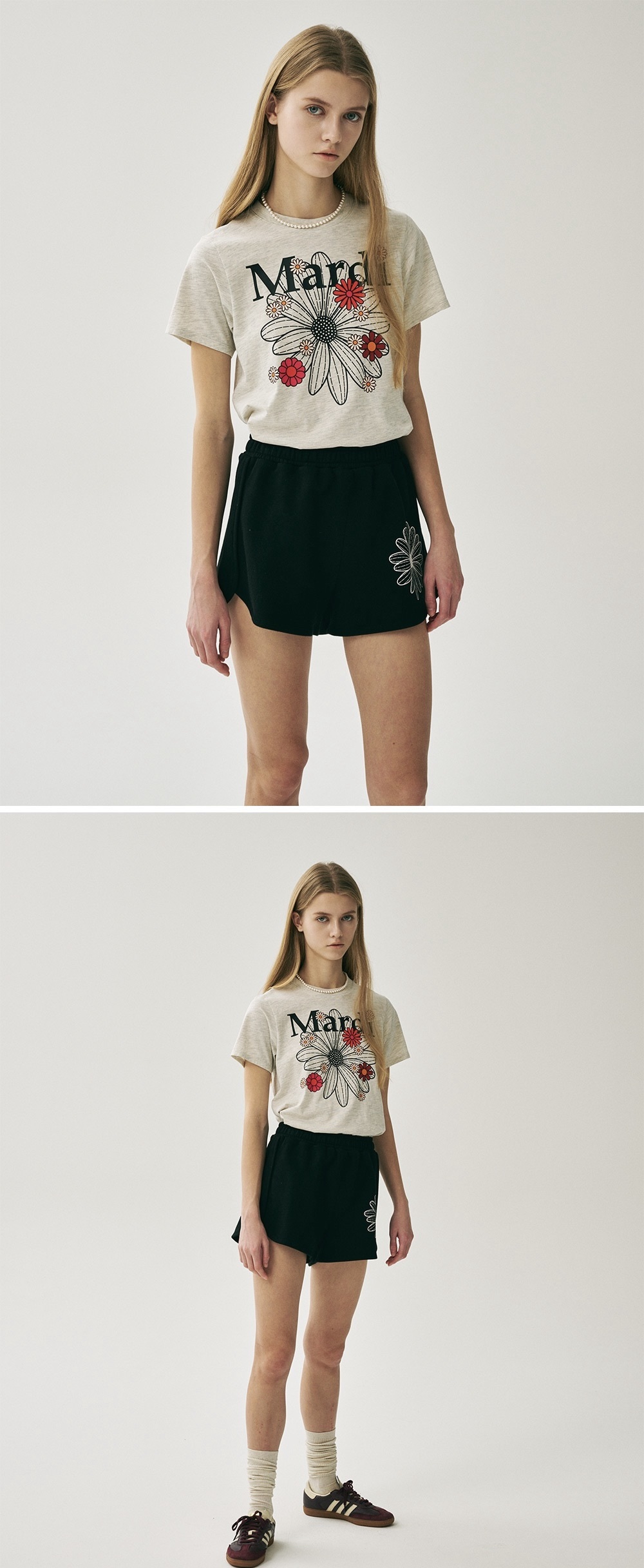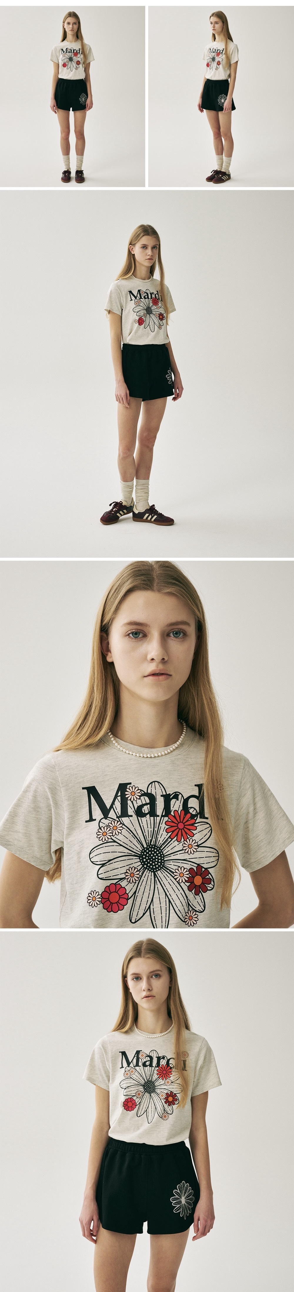 MARDI MERCREDI-小雛菊slim短袖T恤-燕麥底/繽紛黑花