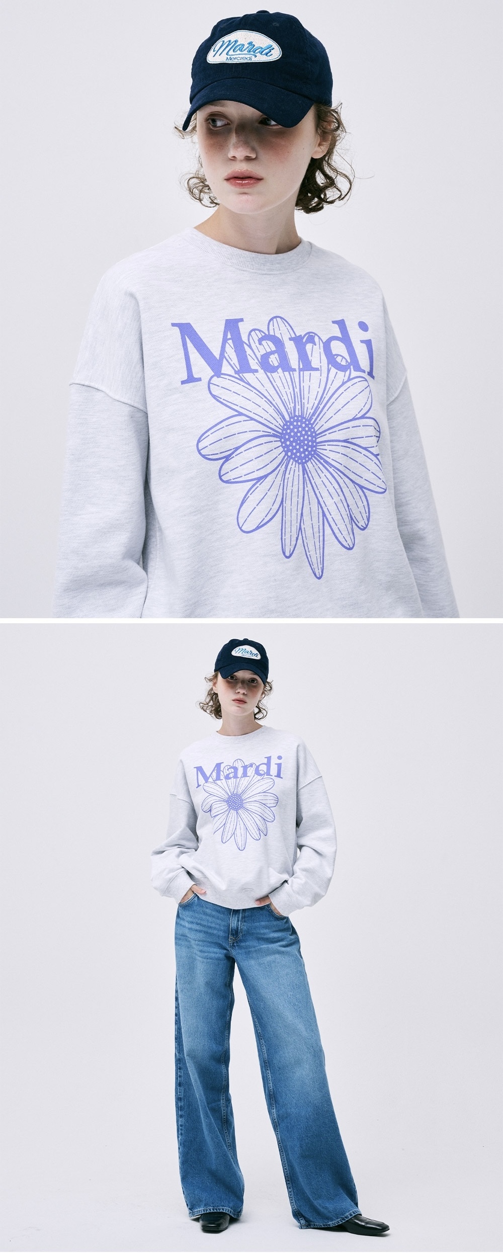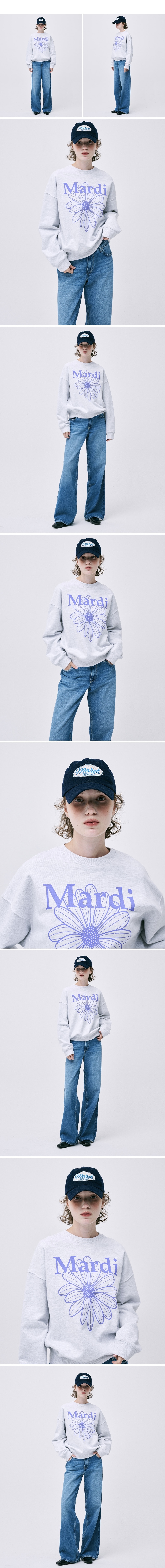 MARDI MERCREDI-小雛菊大學T-淺灰底/紫花