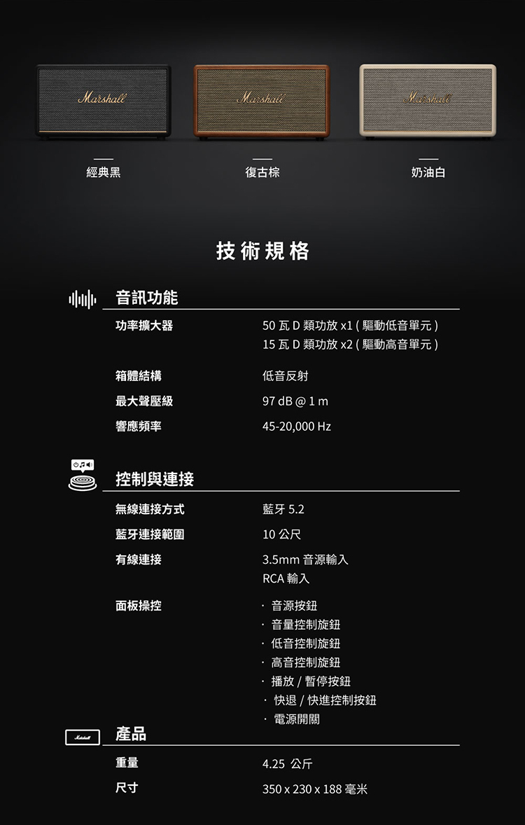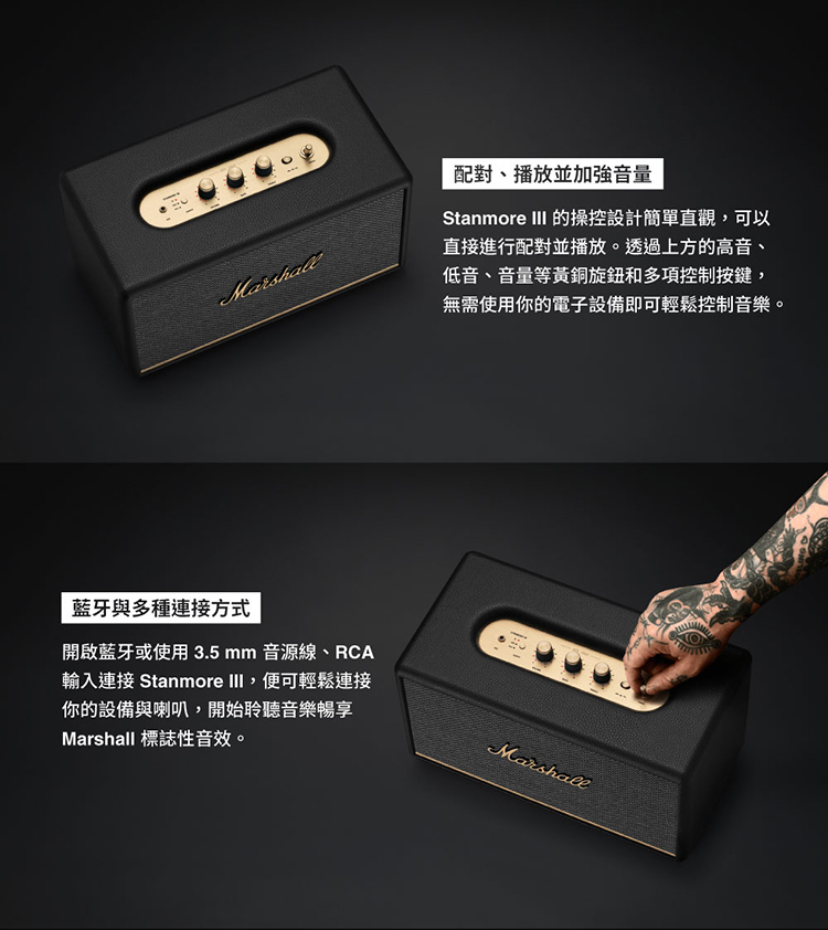 .手寫體MarshallLogo和黃銅旋鈕,呼應品牌的搖滾傳承