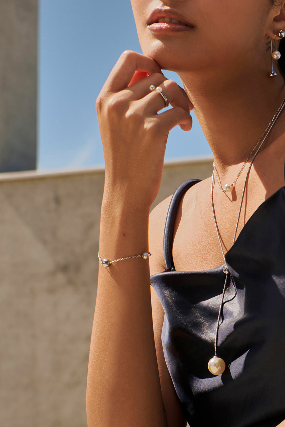 精緻線環繞頸際,搭配垂墜線條懸掛單珠,