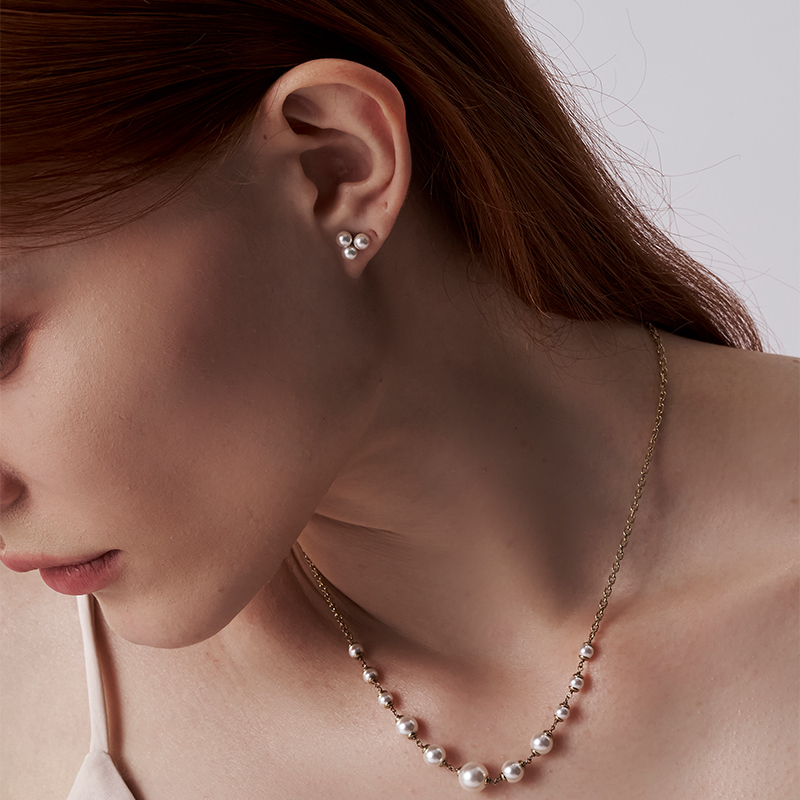 簡約經典 4mm 珍珠比鄰排列,象徵時間與個人故事的交織。結合品牌獨家 E 珍珠,百搭優雅的設計,跟隨時間的流動,輕鬆點綴、陪伴你的日常生活。