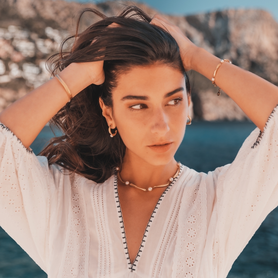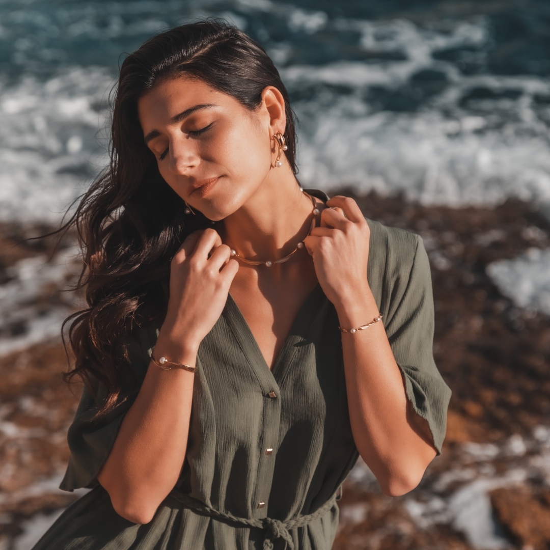 全新Undulation項鍊,以海浪起伏的迷人線條為設計靈感,配戴上環繞式的優雅靈動,是讓人目不轉睛的配飾。以ME30經典珍珠及高品質抗敏316L不鏽鋼製成,取代傳統的高污染貴重金屬。單獨配戴奪目迷人,也可以疊戴其他配件,穿戴出不同層次。