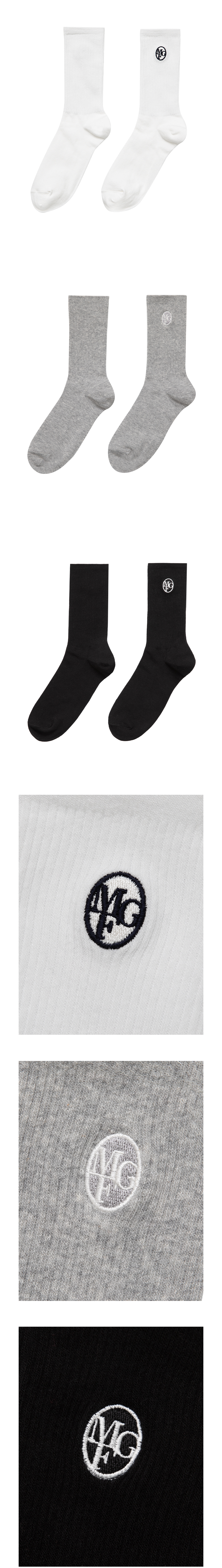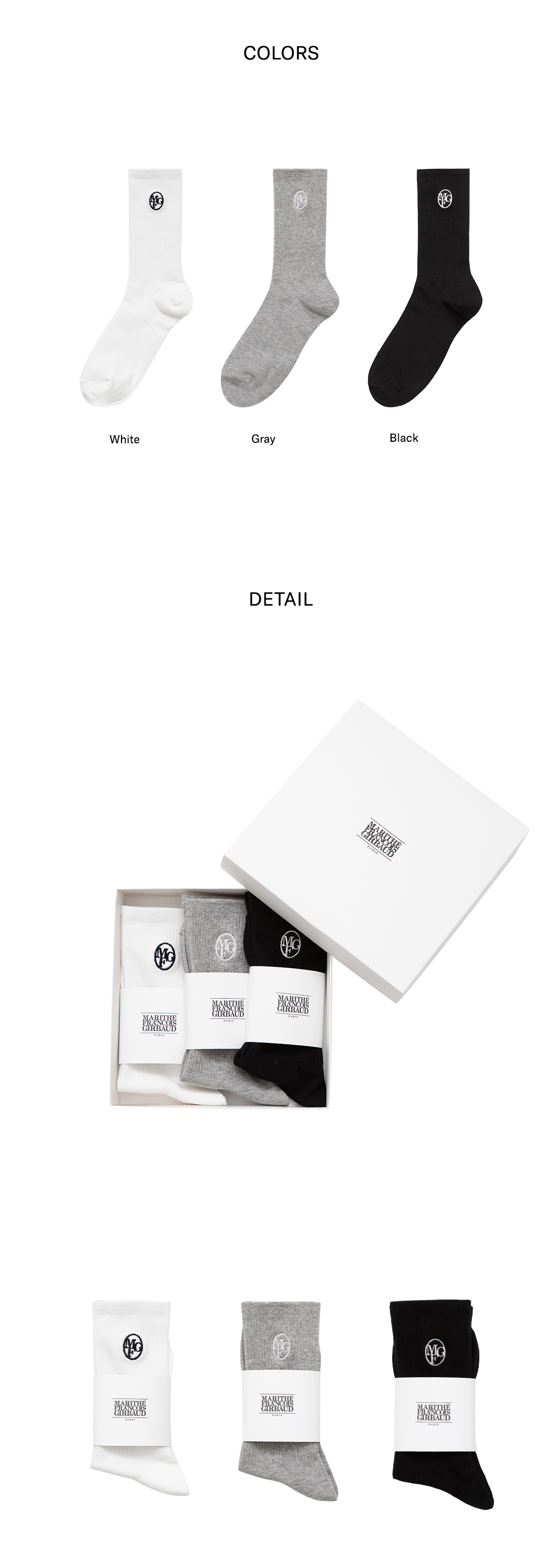 • 品牌經典刺繡襪,黑/白/灰各一雙
