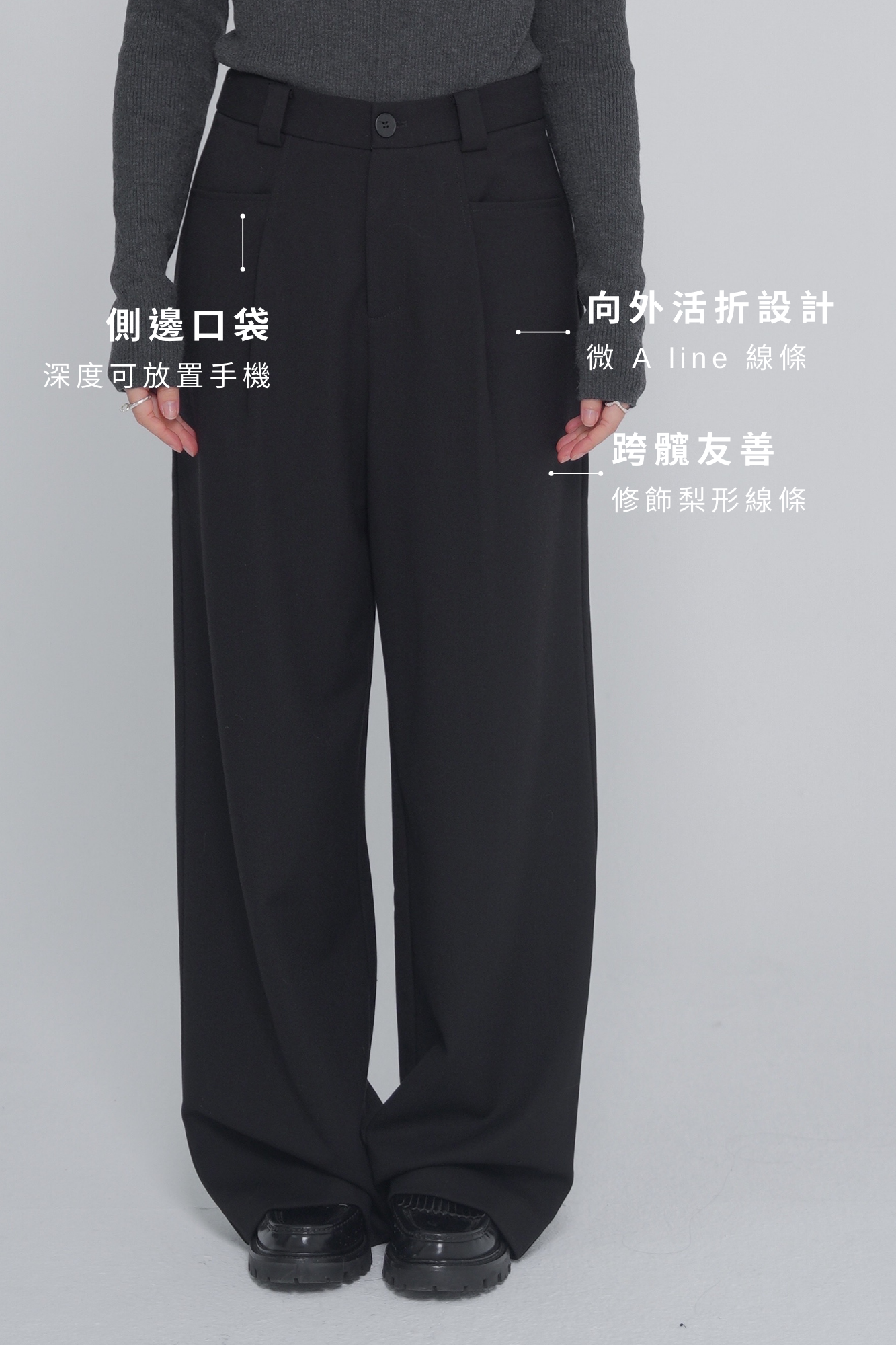 寬鬆版型|俐落的西裝寬褲設計,修飾腿部線條