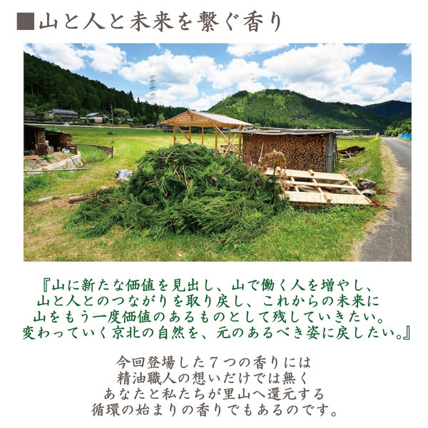 即使它們在森林放置了數百年,仍然沒有腐爛,能夠提煉出高品質的精油。隨著砍伐屋久杉被禁止,能夠提煉精油的屋久杉會愈來愈少屋久杉精油的產量將更為有限。