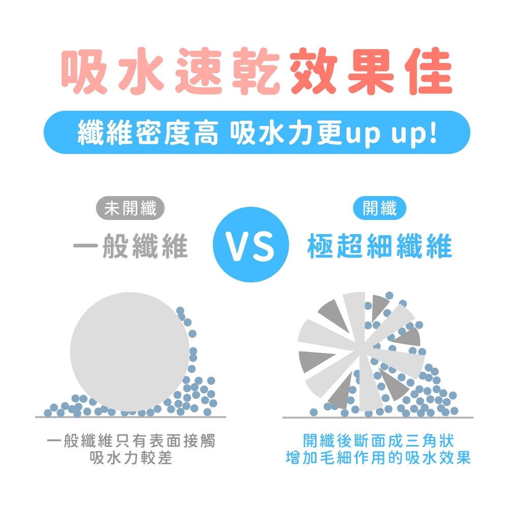 注意:本商品不適合使用柔軟劑洗滌,容易阻塞導水纖維影響吸水效果。