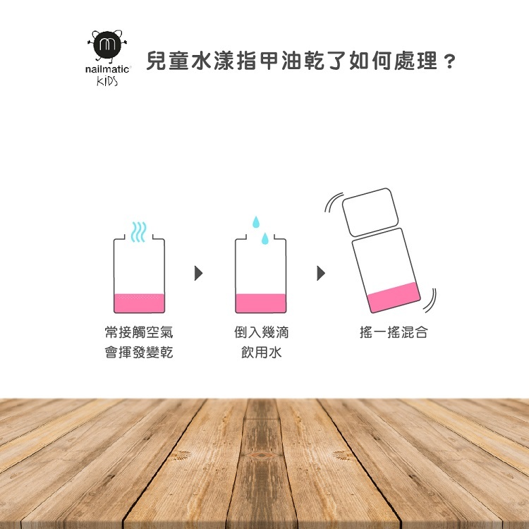 指甲油專為兒童設計,不含有機溶劑、磷苯二甲酸鹽、甲醛、甲苯、香精,使用清水即可輕易卸除。