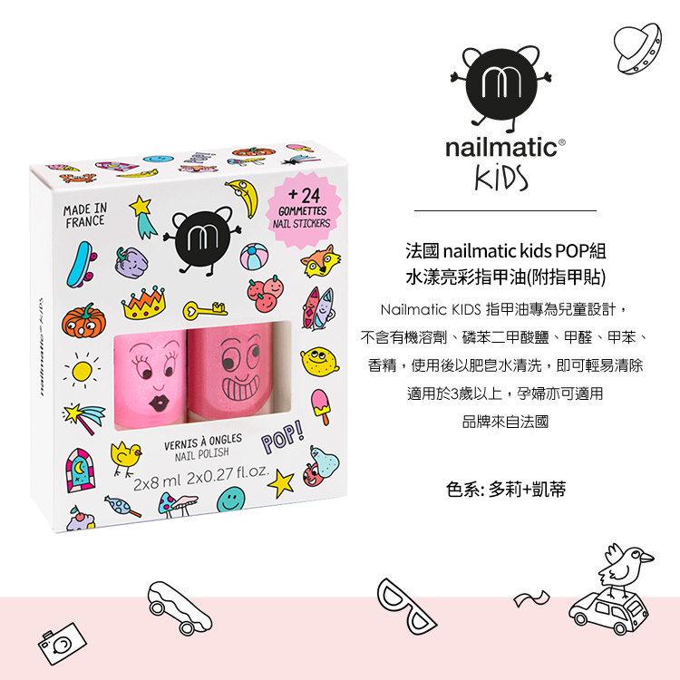 「美麗人生因為色彩而更有樂趣」,nailmatic的品牌故事訴說著這樣的概念,它來自法國巴黎,原本是專業指甲油品牌,自2014推出nailmatic Kids 小朋友專屬的水漾亮彩指甲油,繽紛的色彩與多樣的選擇。除了小朋友之外,強調無毒與可水洗的產品設計,連孕婦也適用,讓寶貝徜徉在多彩多姿的世界,因為有nailmatic而更有趣。