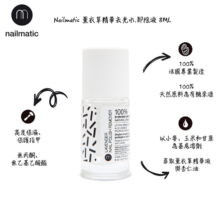 - nailmatic 希望能更友善的對待指甲和環境,因此純色指甲油系列,以更環保和符合健康的生活方式來生產。