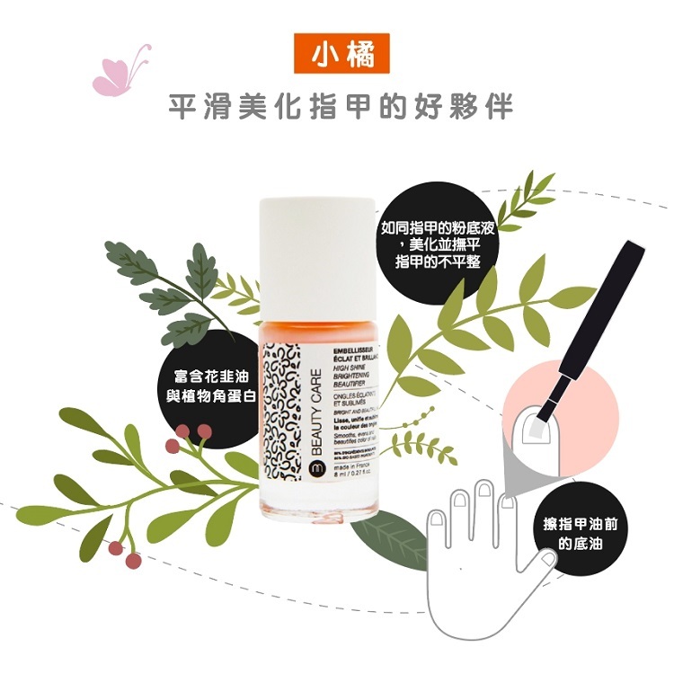 - 除此之外,拋光劑富含植物蛋白和琉璃苣油以滋養指甲。