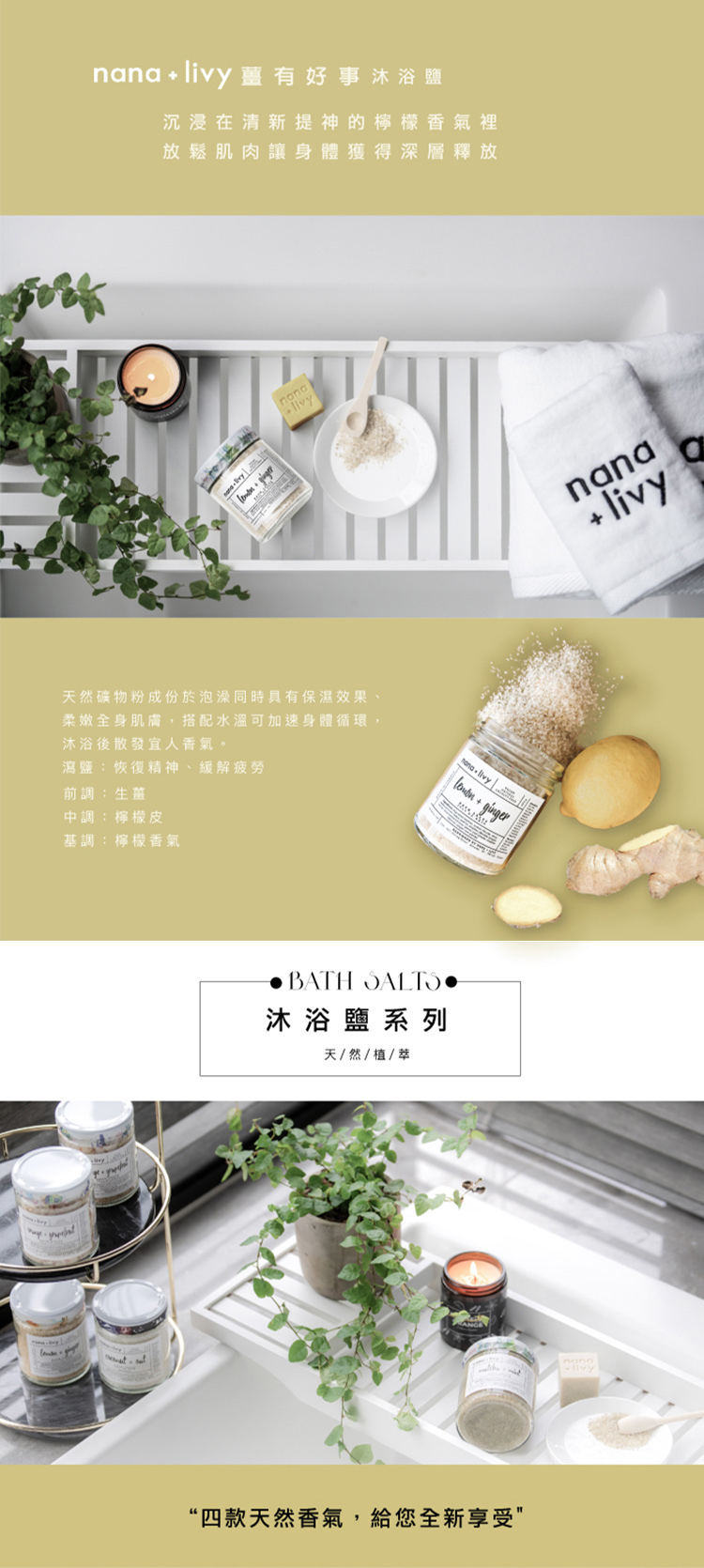 檸檬+薑浴鹽沐浴鹽。可增強肌膚防禦力,通過改善血液循環和豐富維他命C滋養肌膚的雙重呵護下,給偏寒手足冰冷的體質,溫暖舒服的新感受。