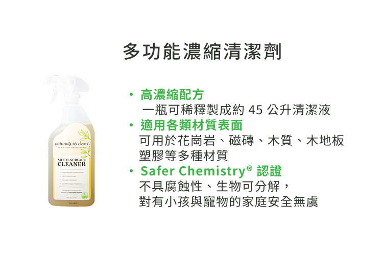 v高濃縮配方 – 一瓶可製作約 45 公升清潔劑,經濟又耐用