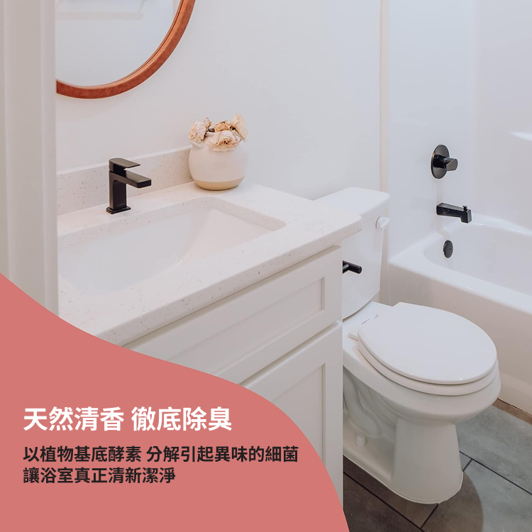 V安全的化學配方 – pH 中性、不具腐蝕性,對各種浴室材質都溫和不損傷