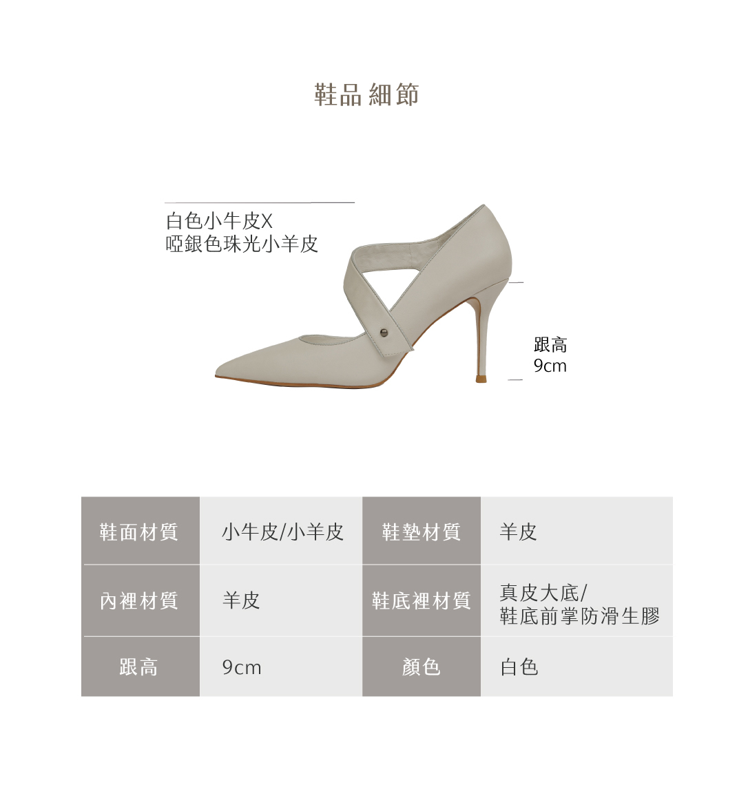 白色:白色小牛皮X 啞銀色珠光小羊皮