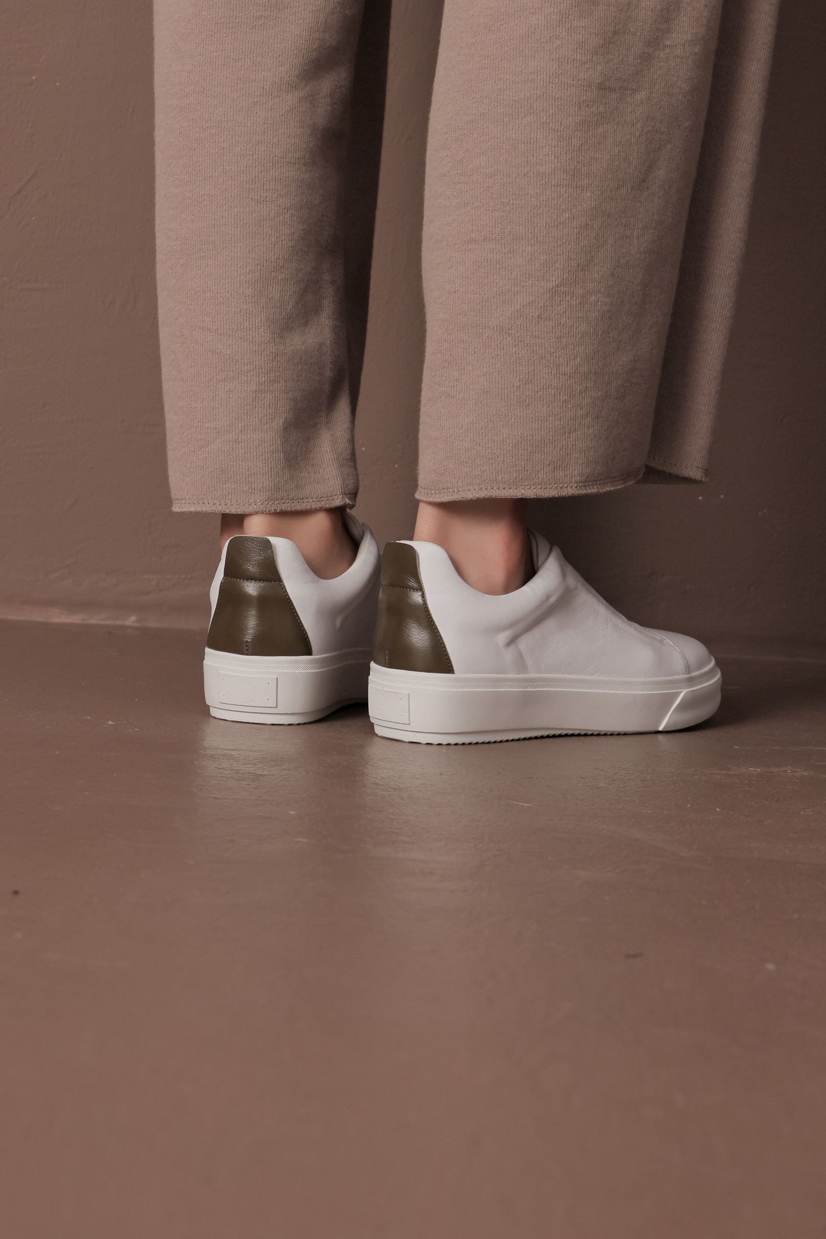 銀灰 白色納帕小牛皮/ 軍綠油亮小牛皮