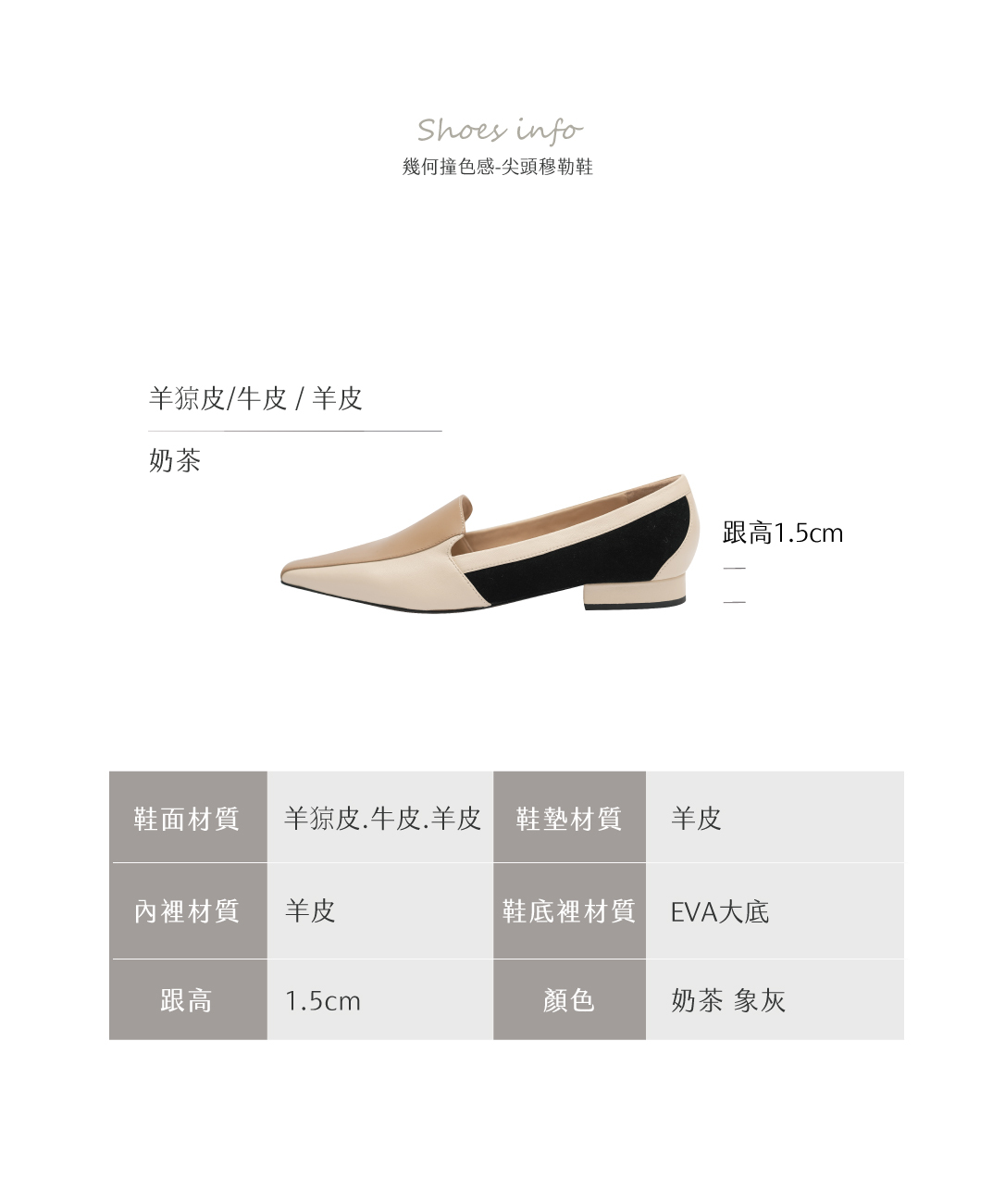鞋裡:羊皮 腳底墊皮:羊皮