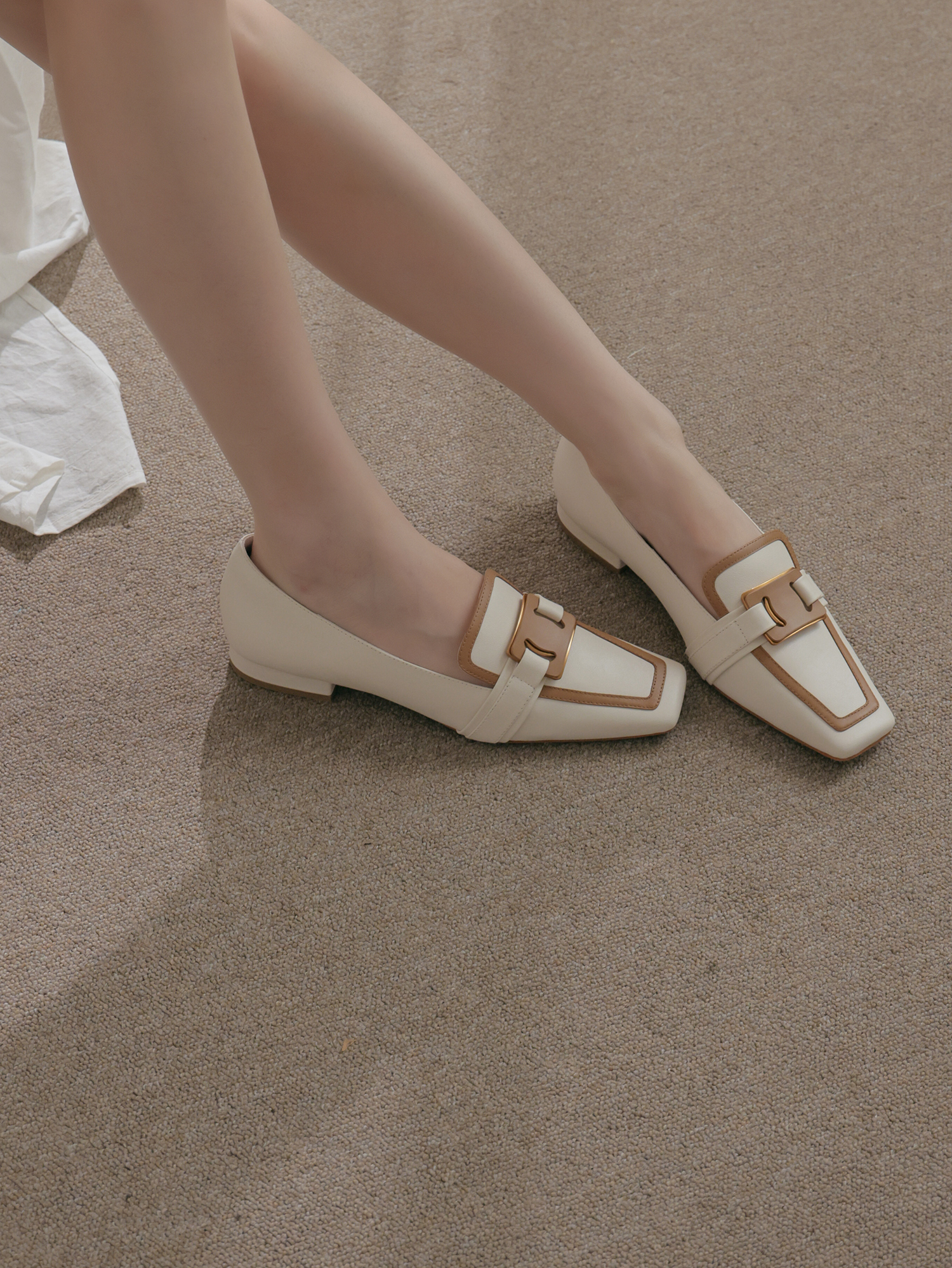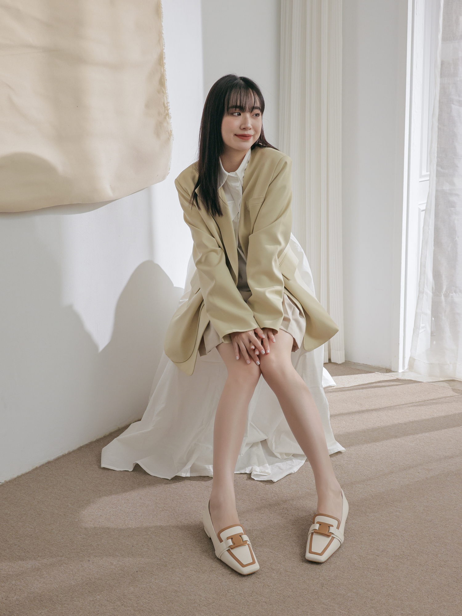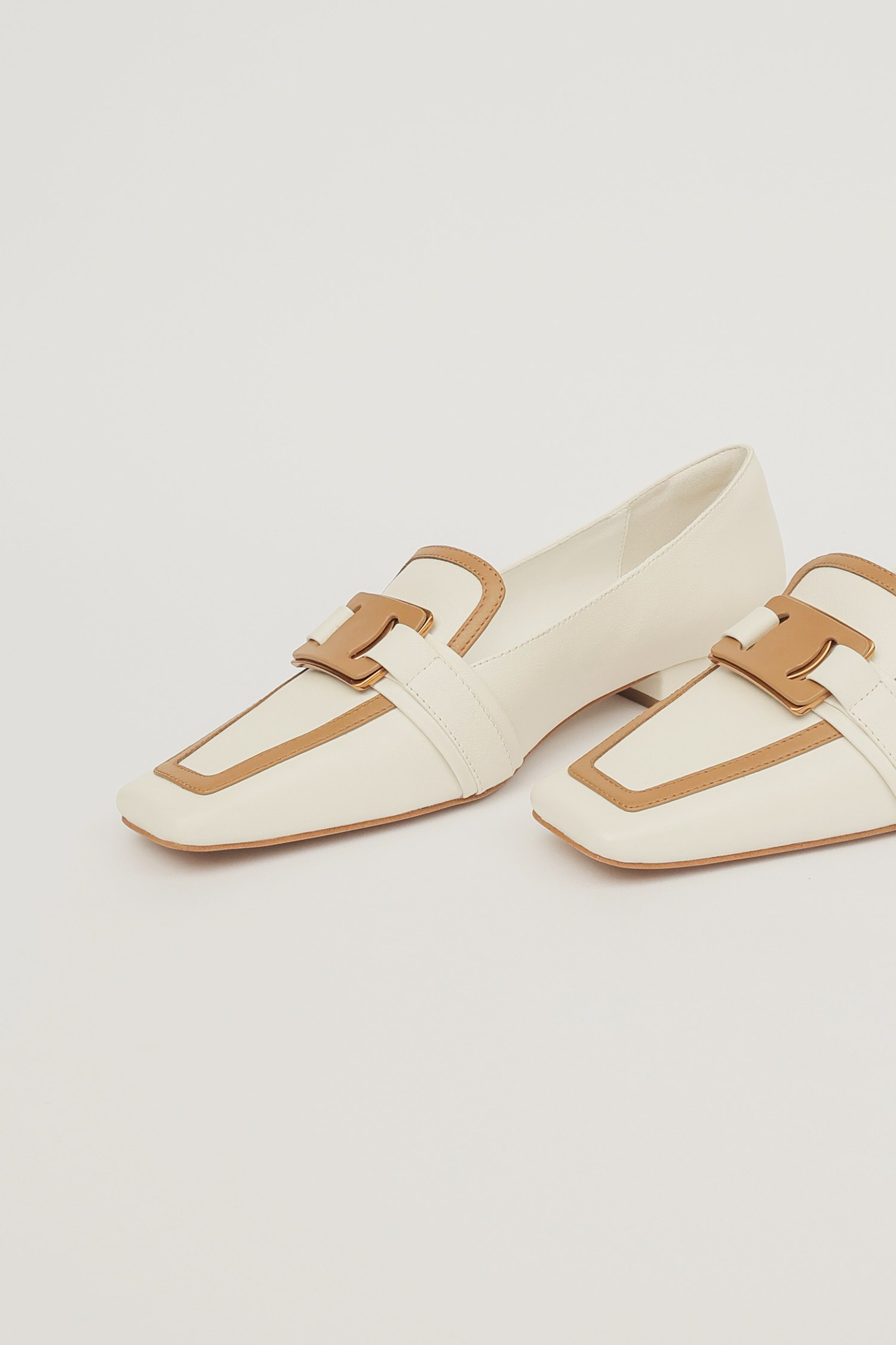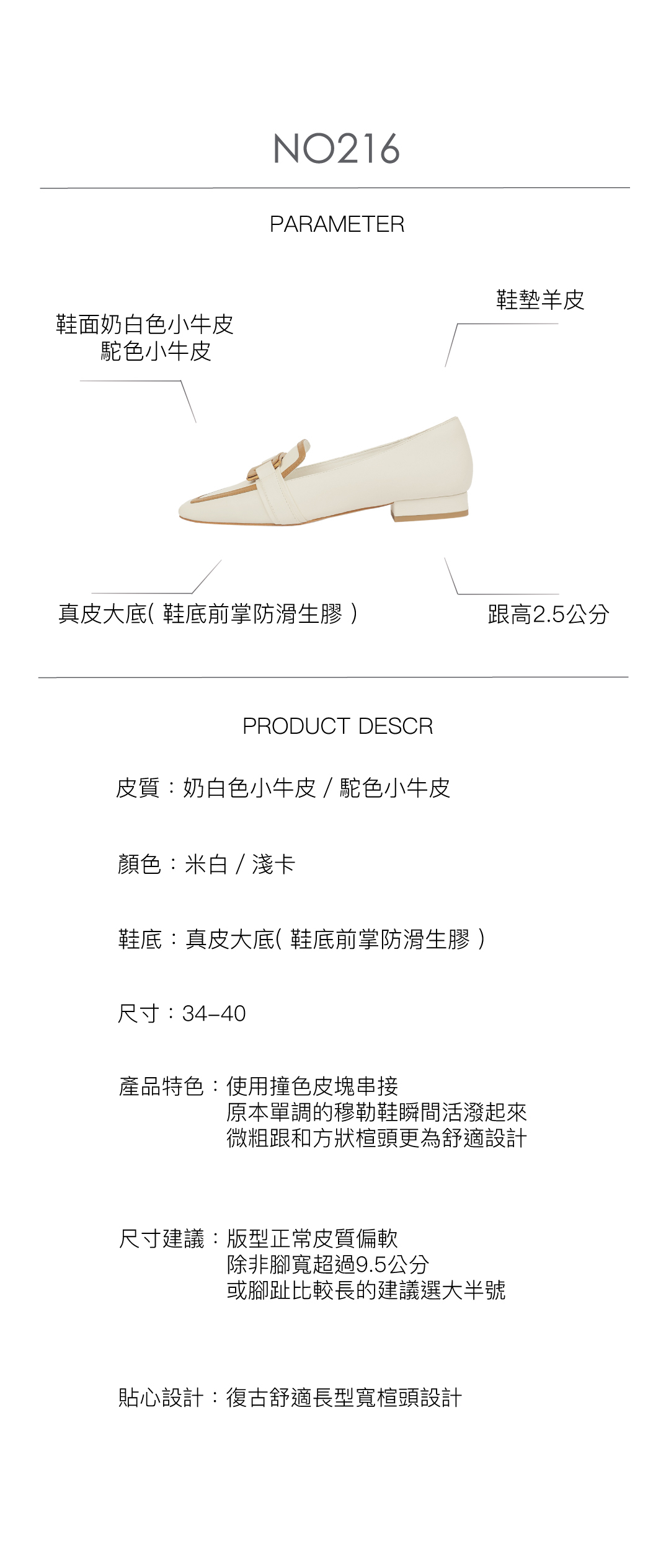 NO216-幾何皮塊結構-穆勒鞋-米白