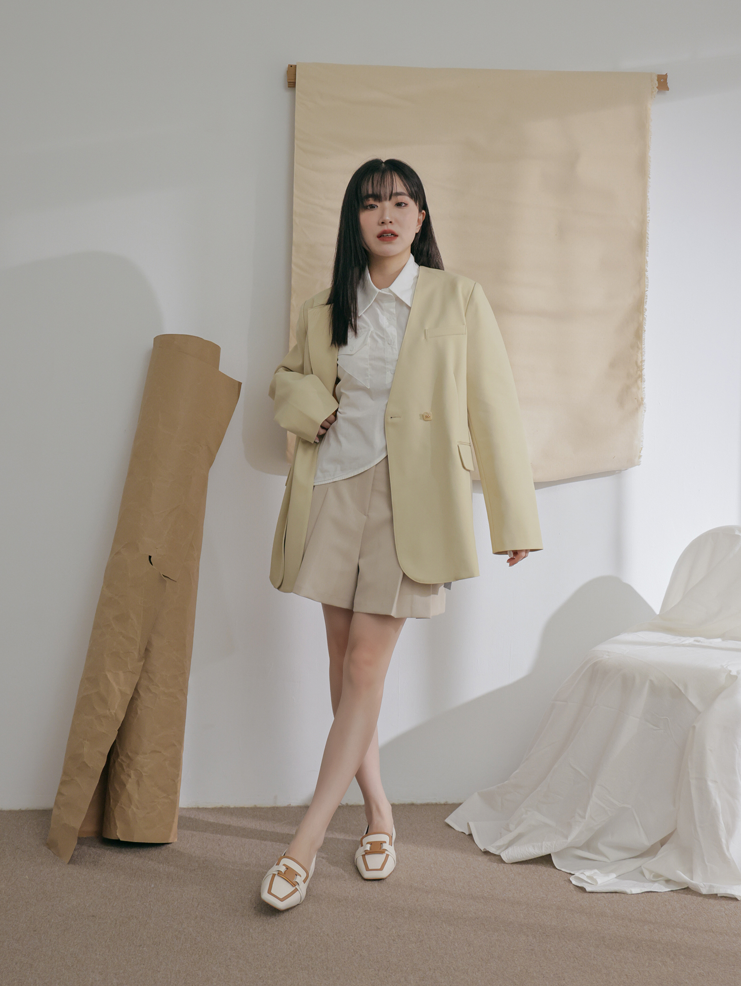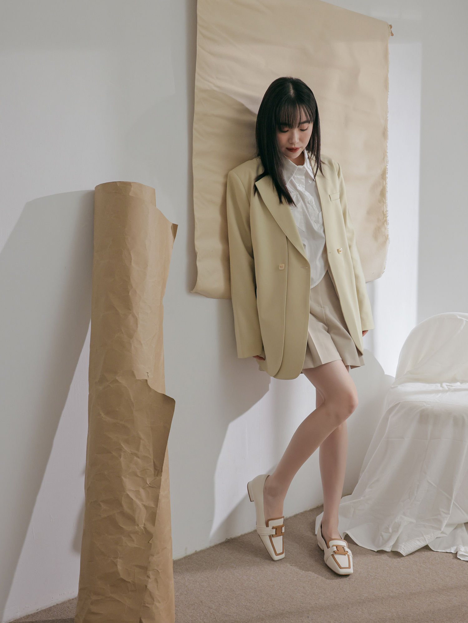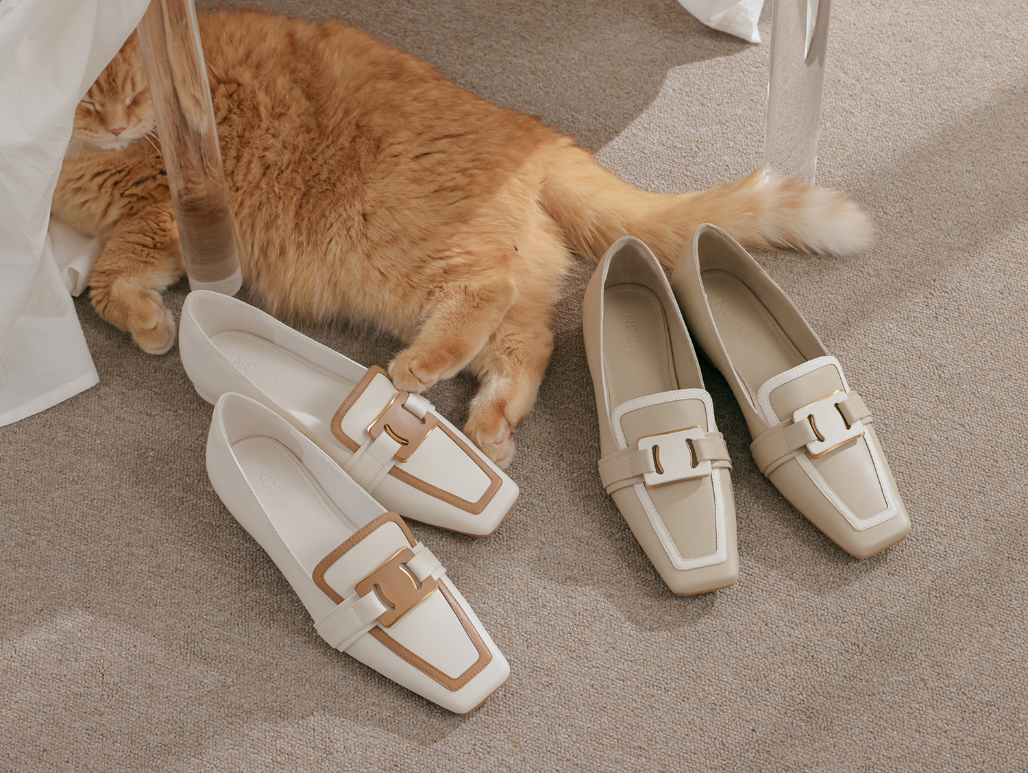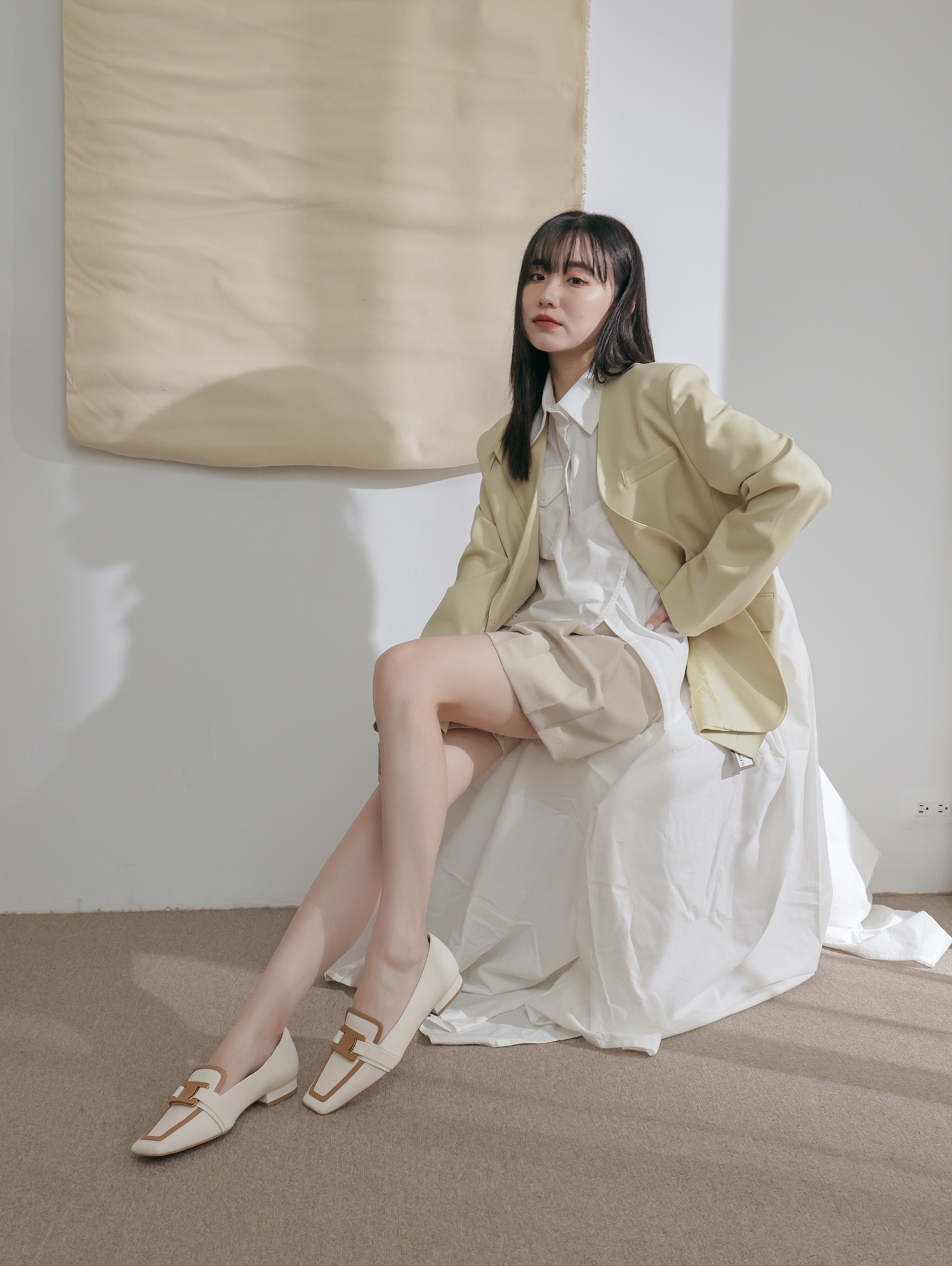 NO216-幾何皮塊結構-穆勒鞋-米白