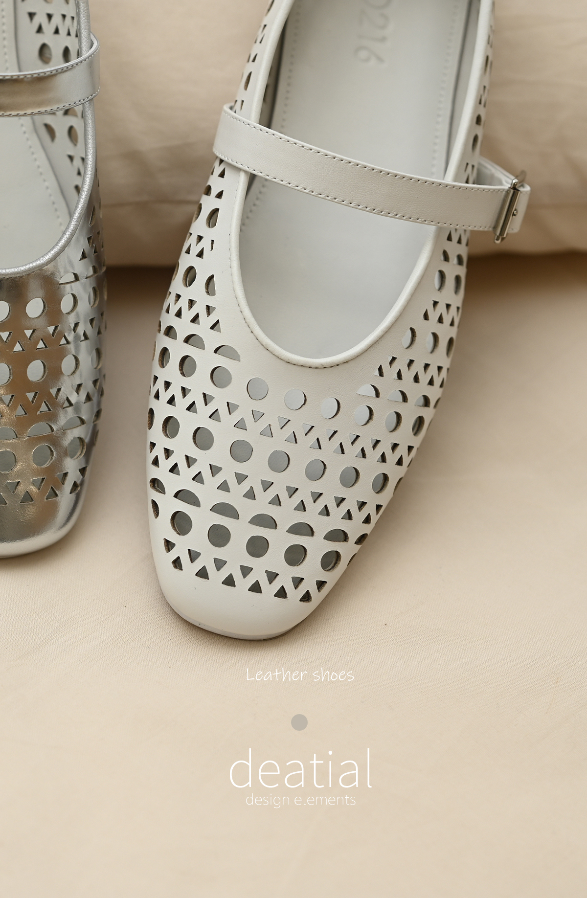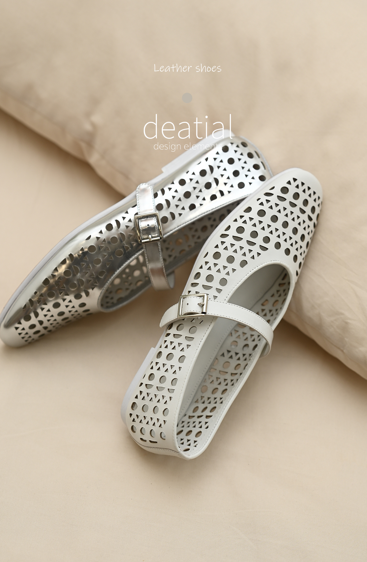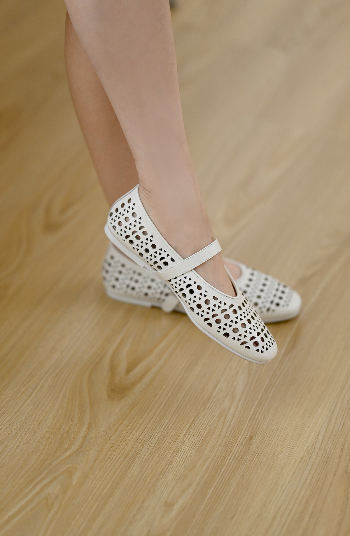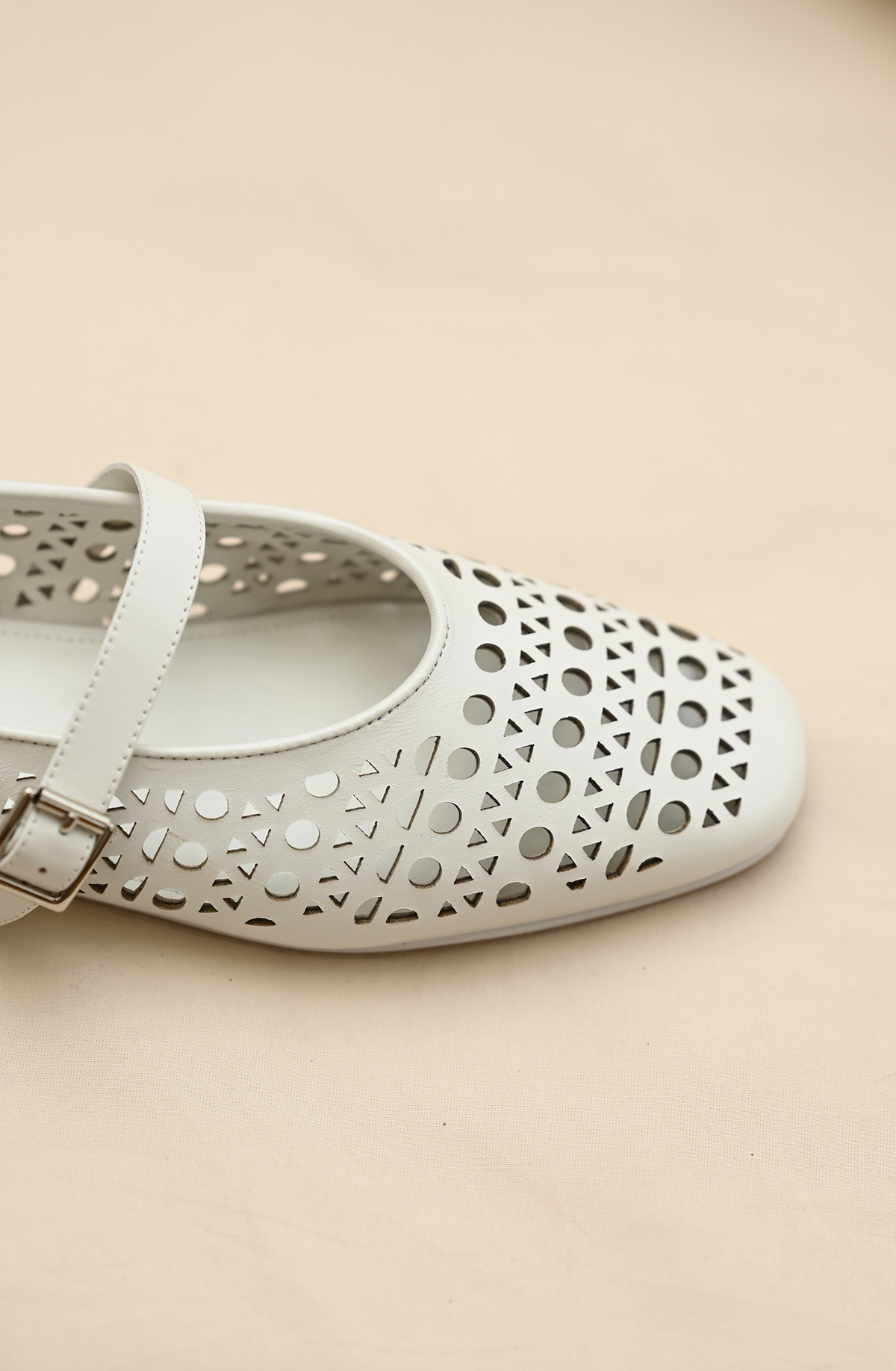 NO216-幾何碎片-簍空結構芭蕾鞋-白色
