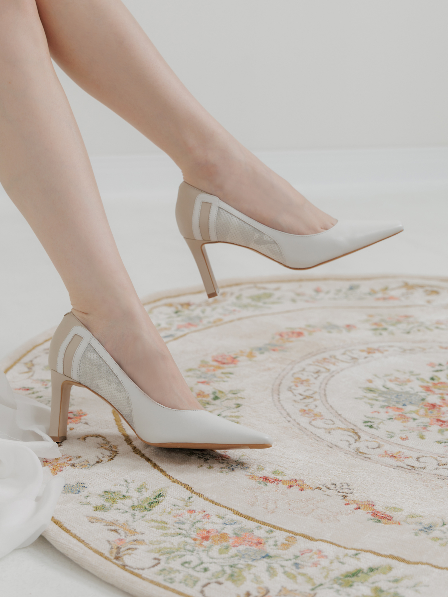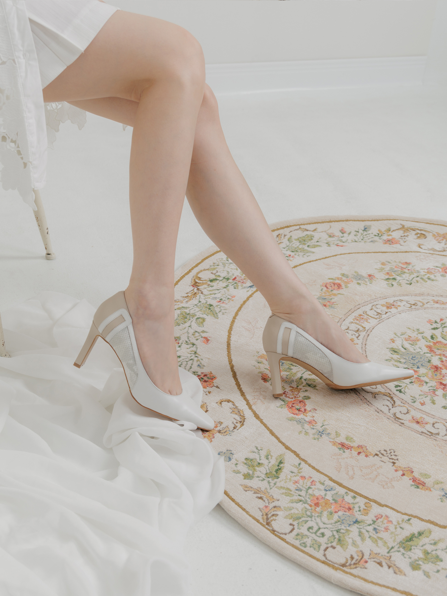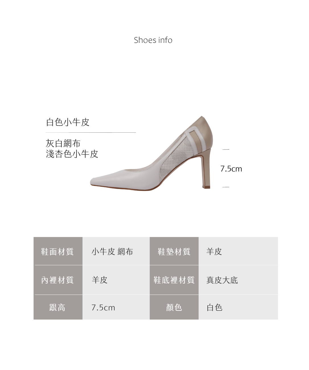 白灰色 白色小牛皮 /灰白網布 /淺杏色小牛皮