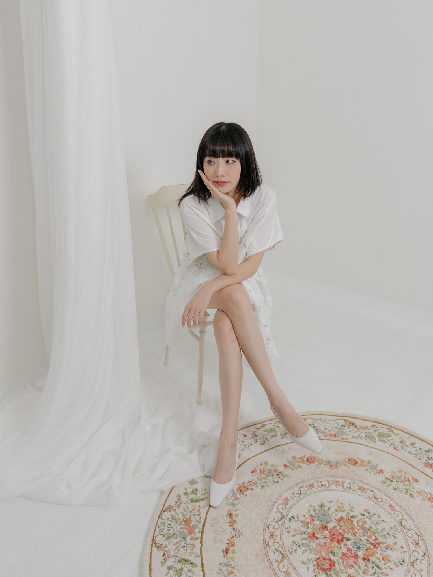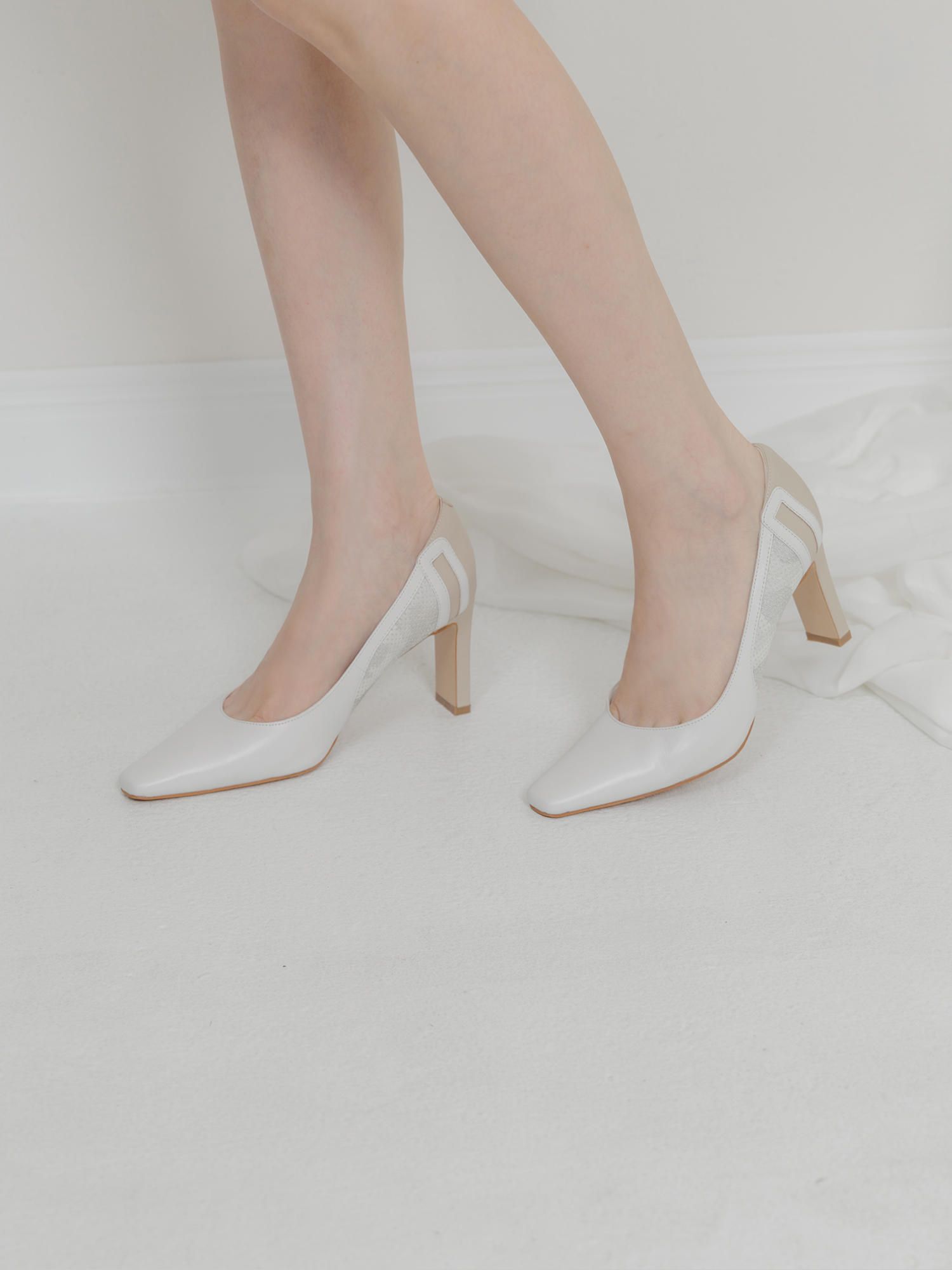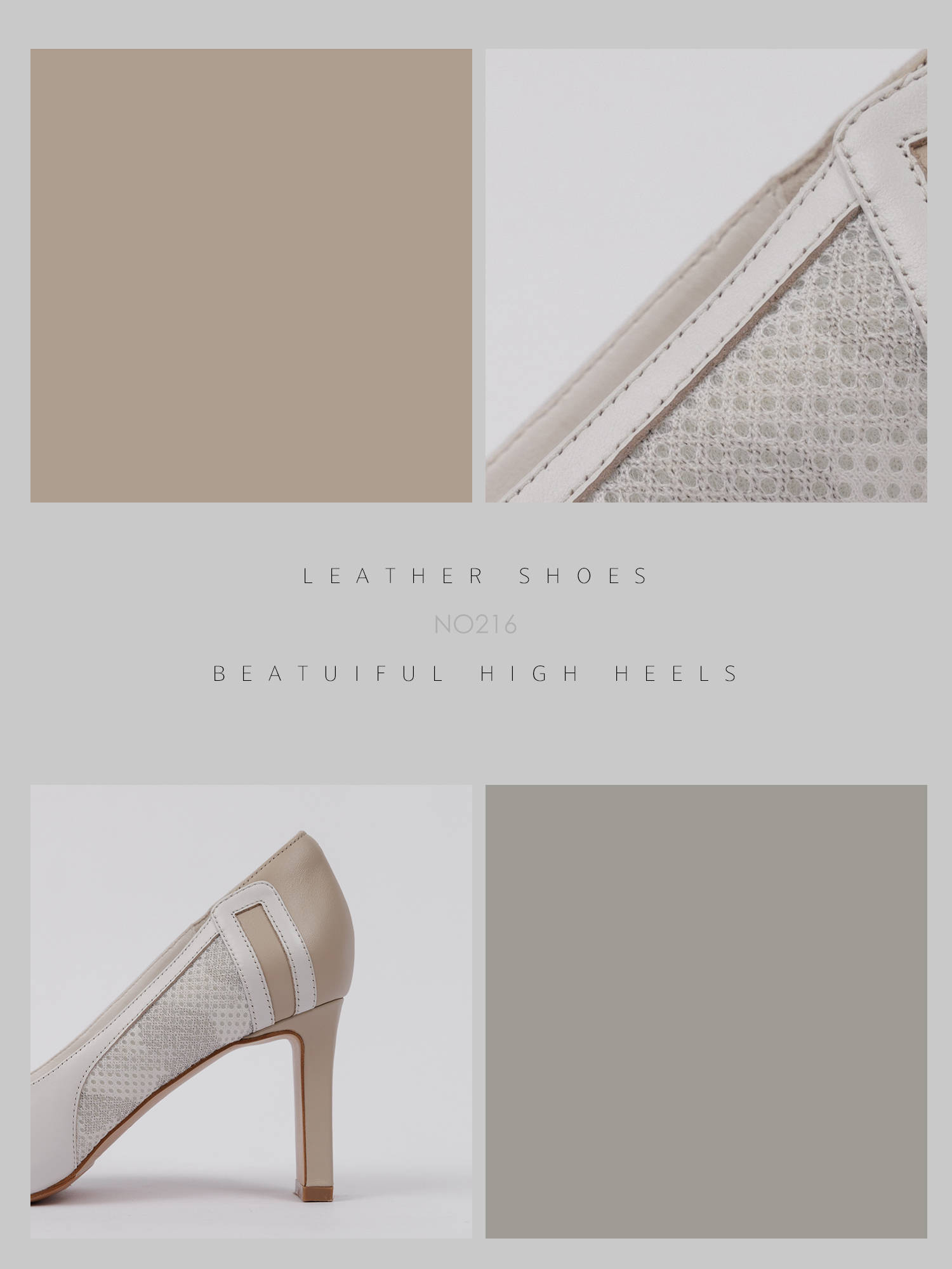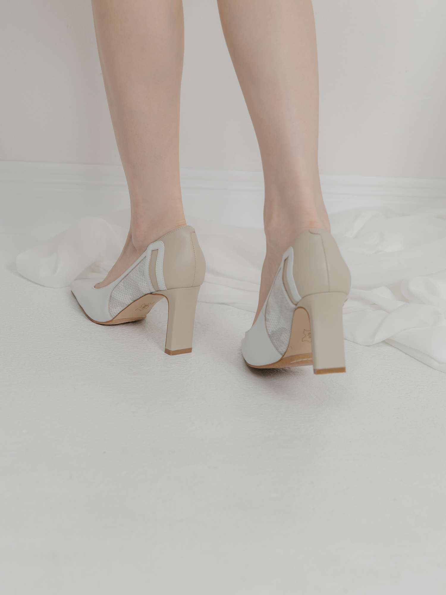 白灰色 白色小牛皮 /灰白網布 /淺杏色小牛皮