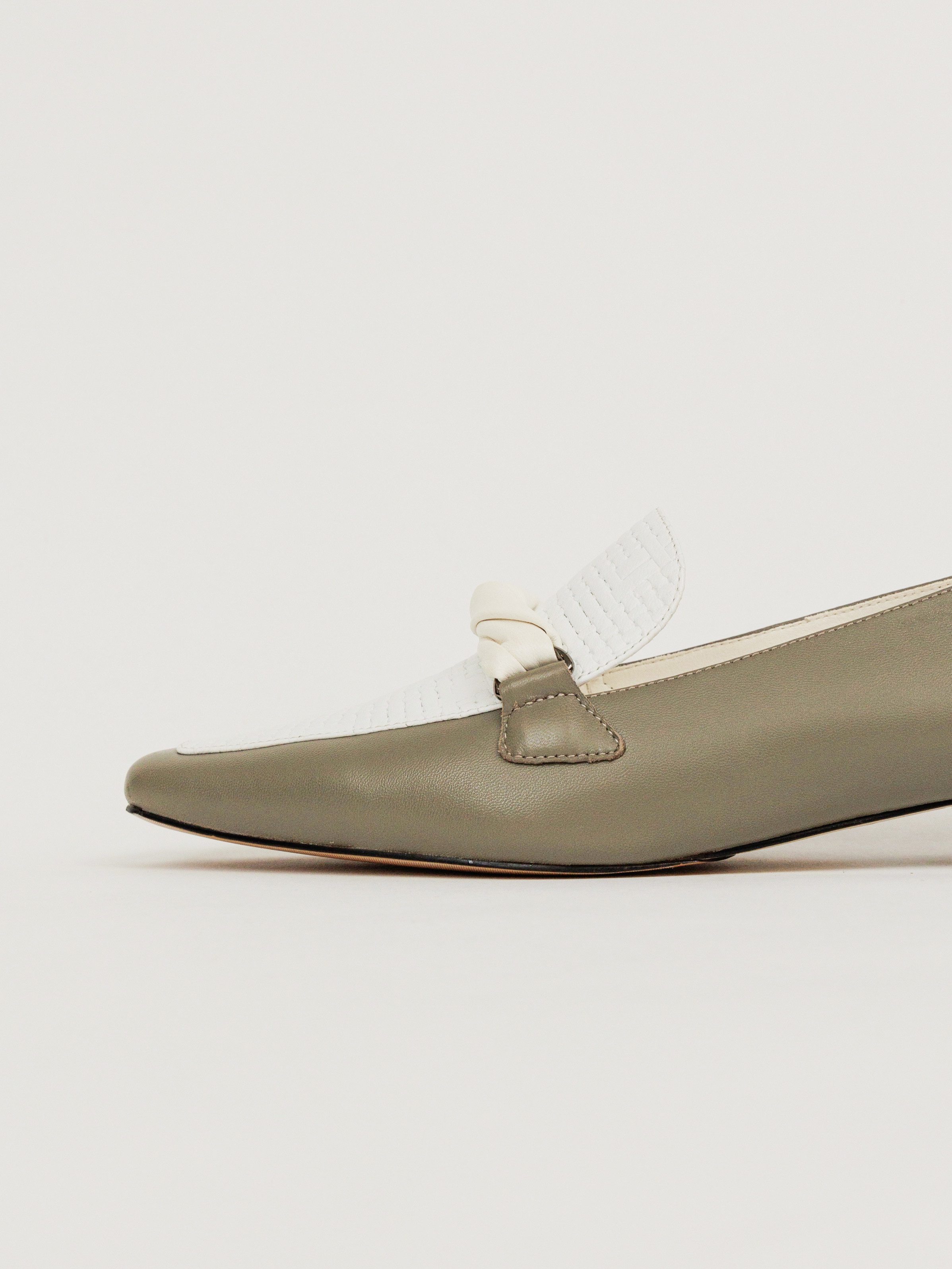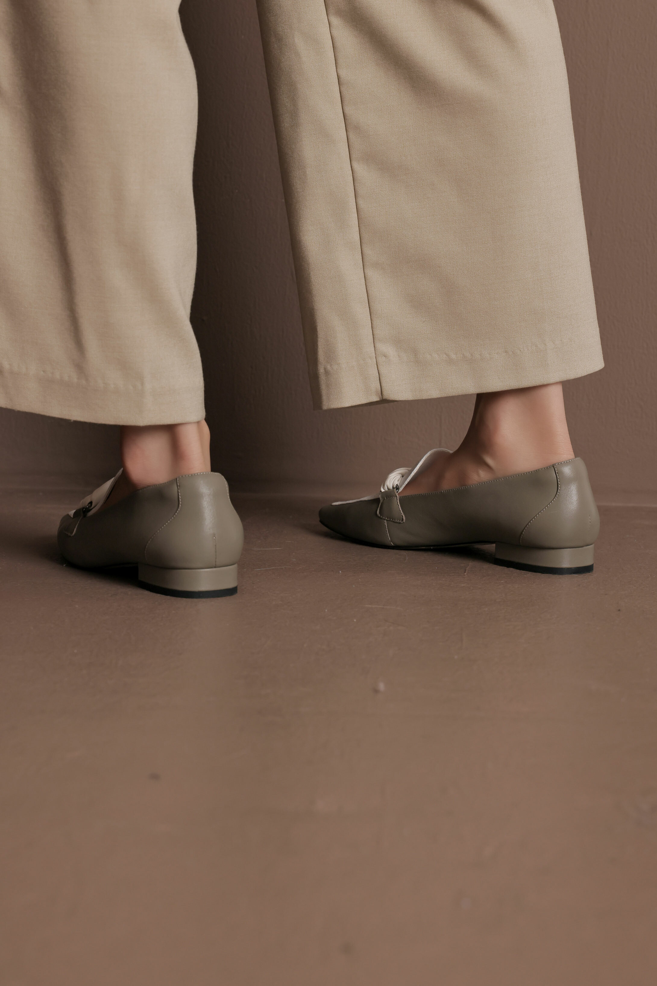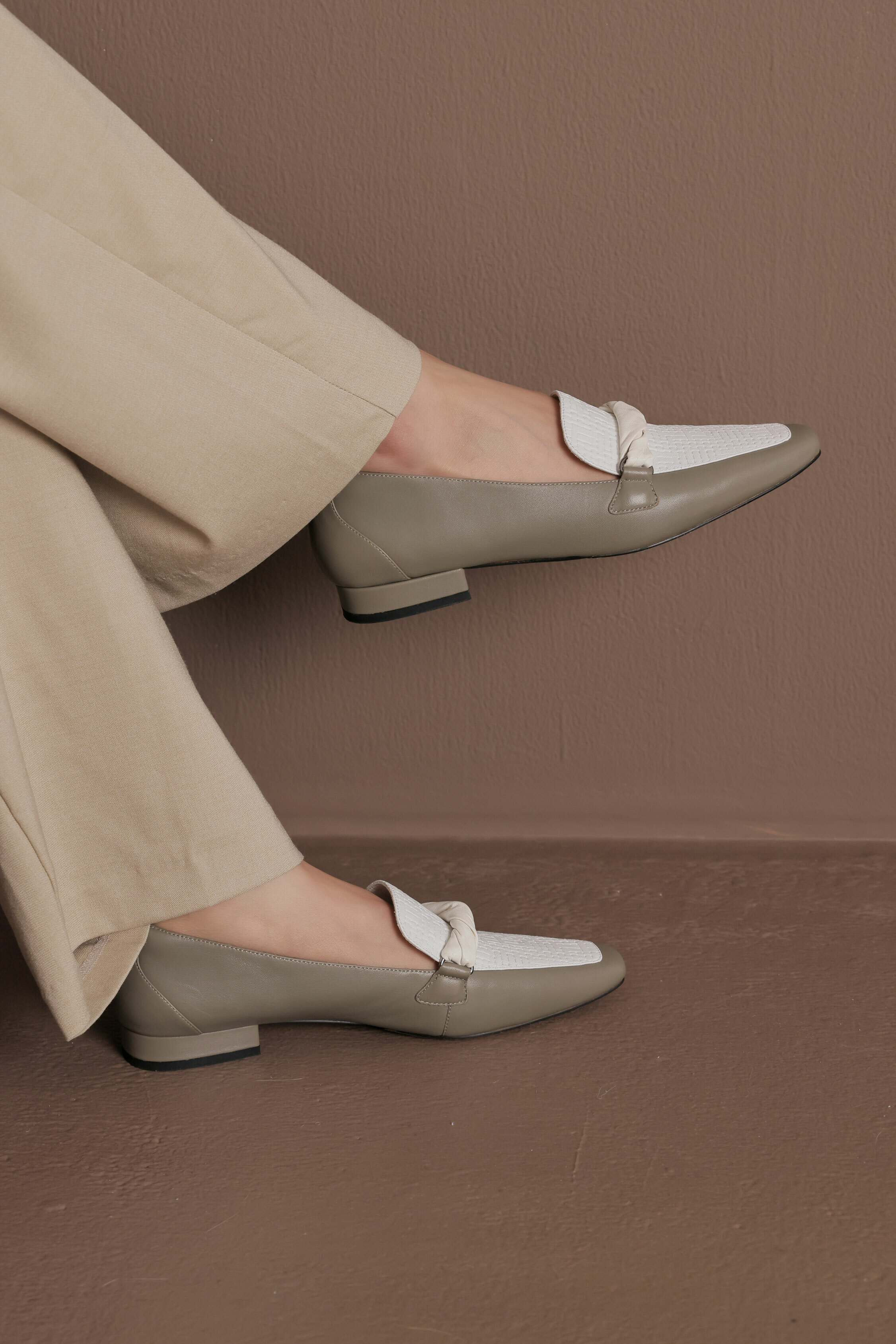 NO216-扭狀橫帶裝飾-軟皮穆勒鞋-灰綠