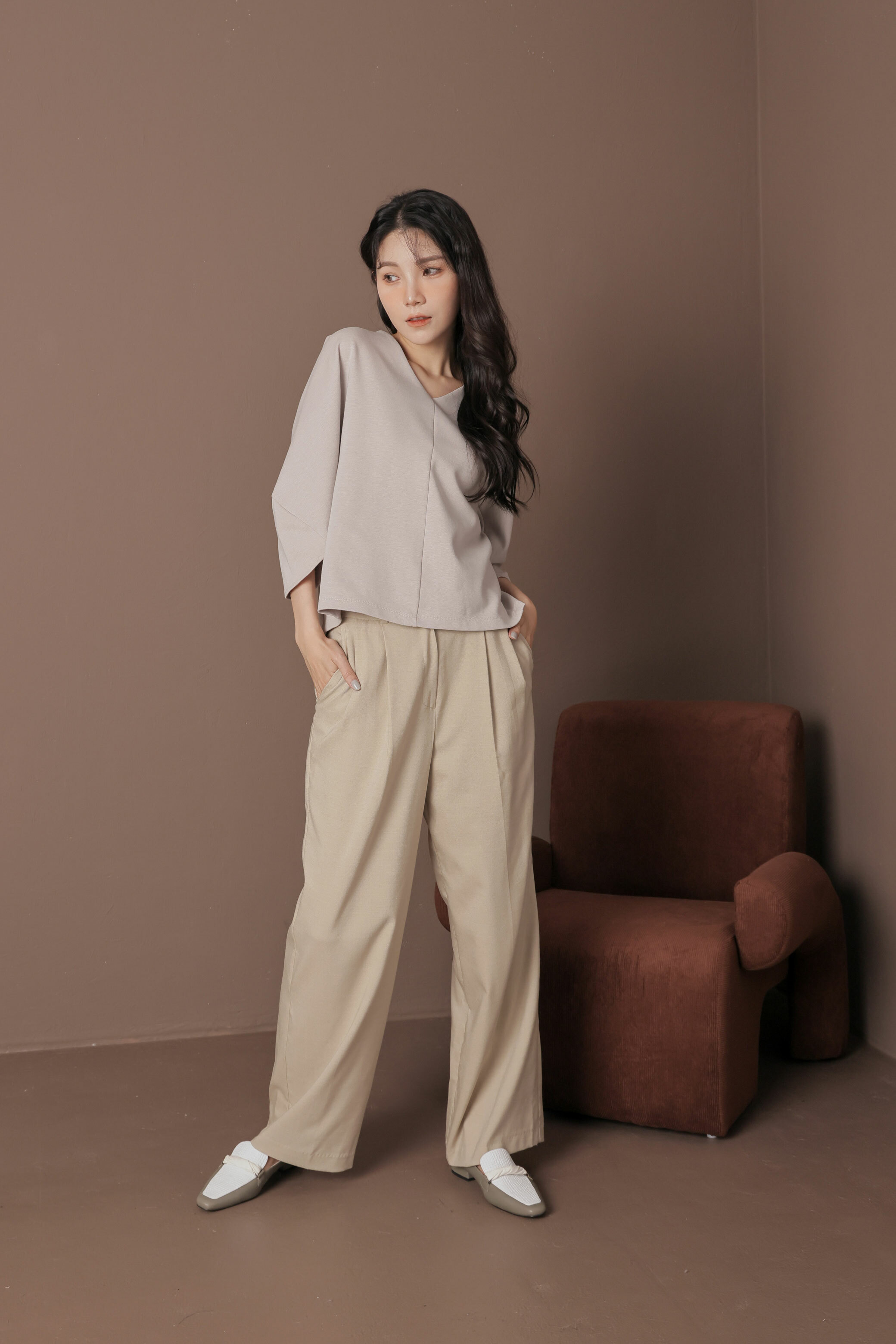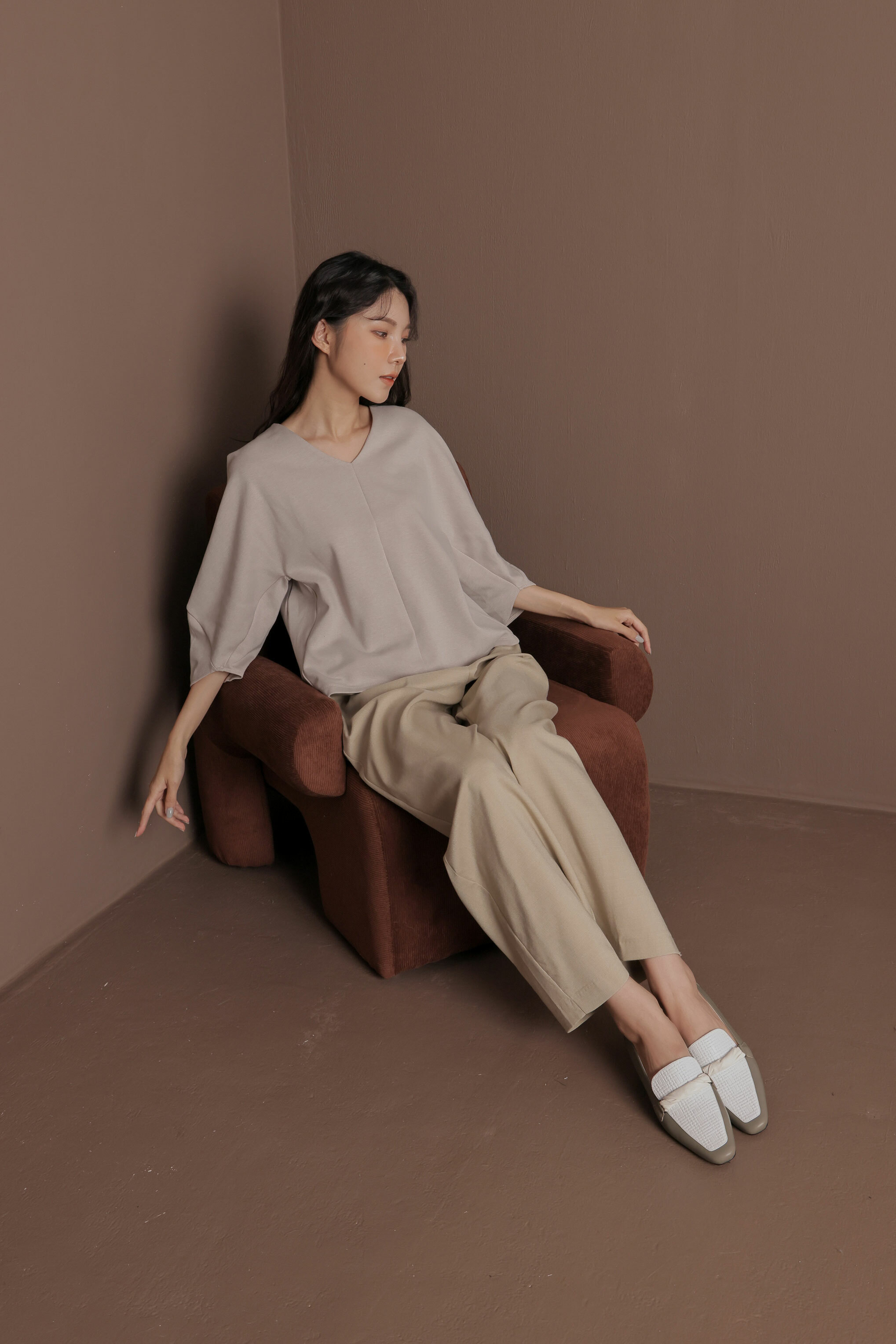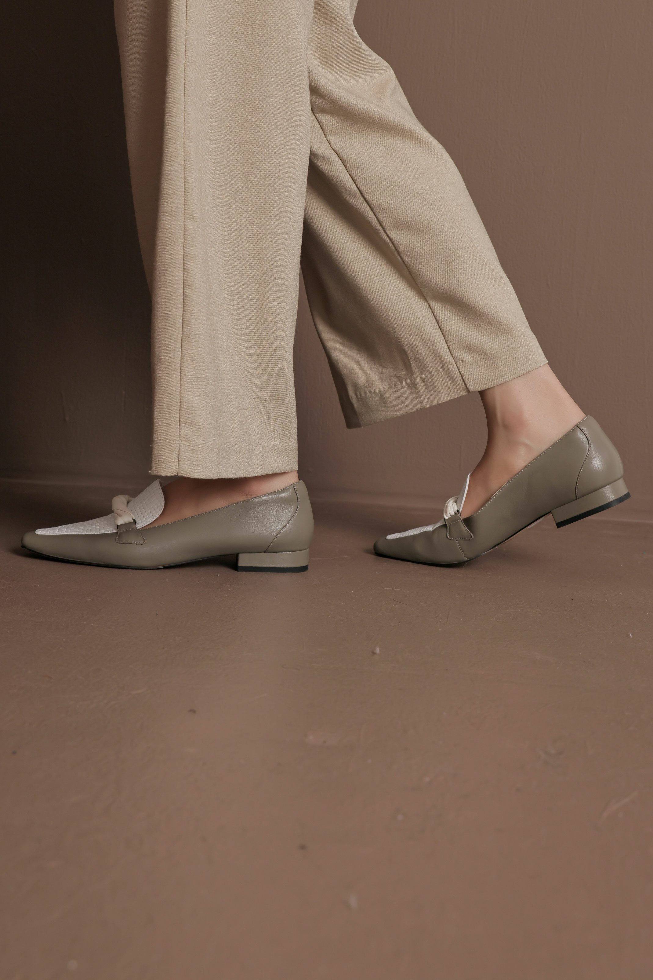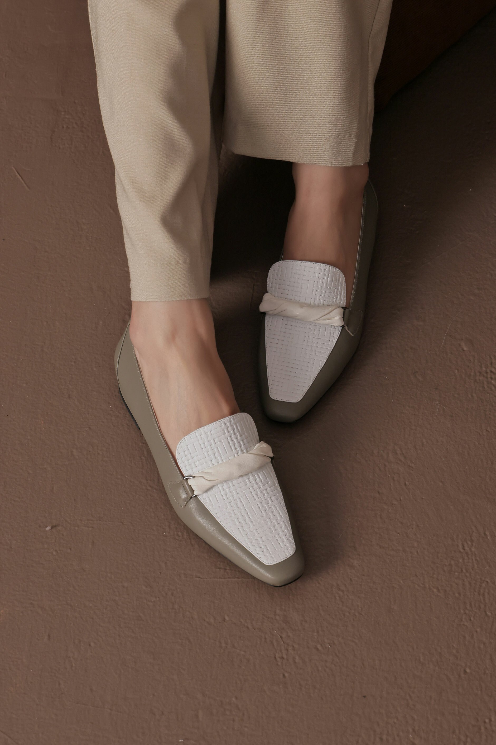 NO216-扭狀橫帶裝飾-軟皮穆勒鞋-灰綠