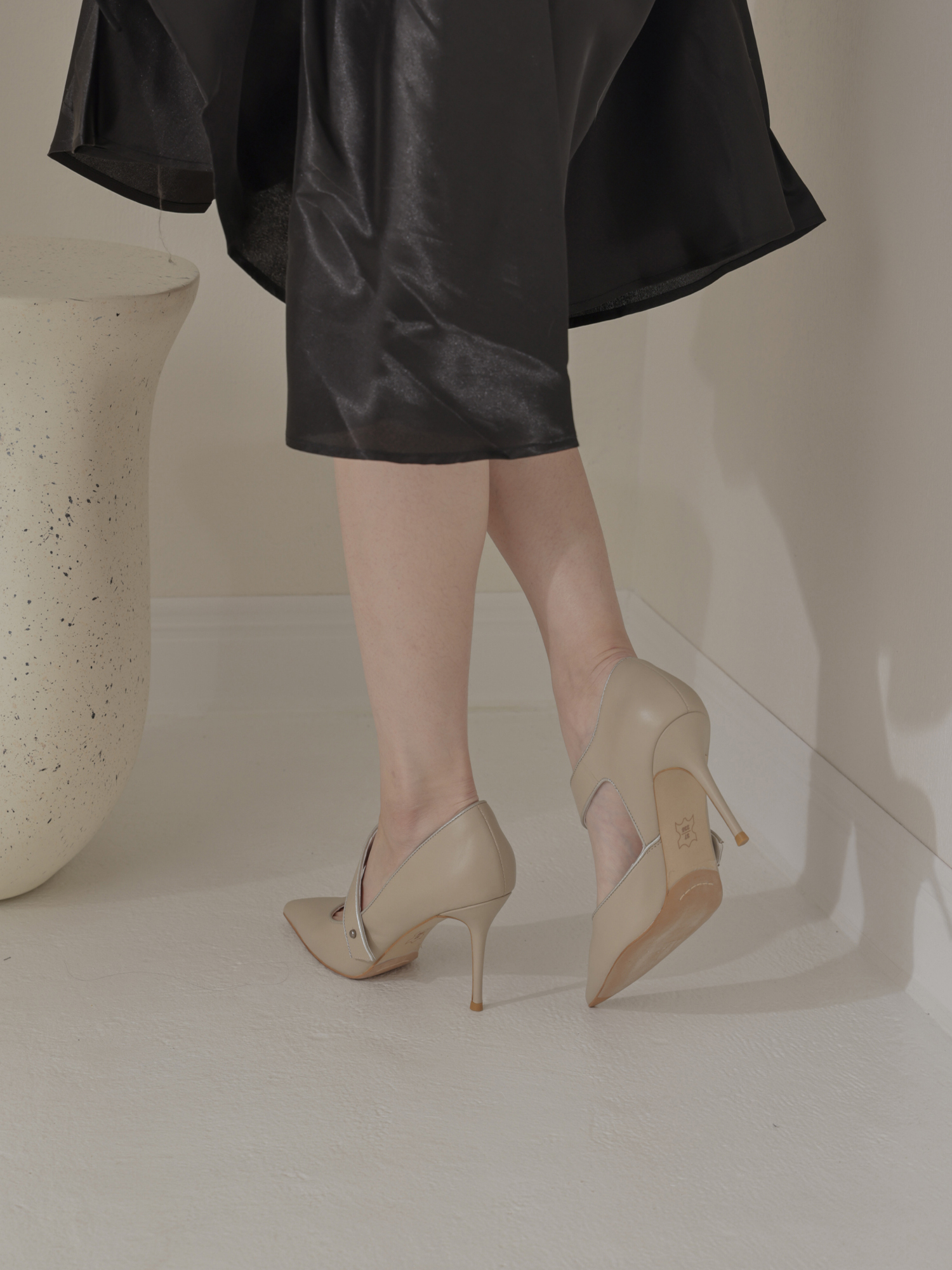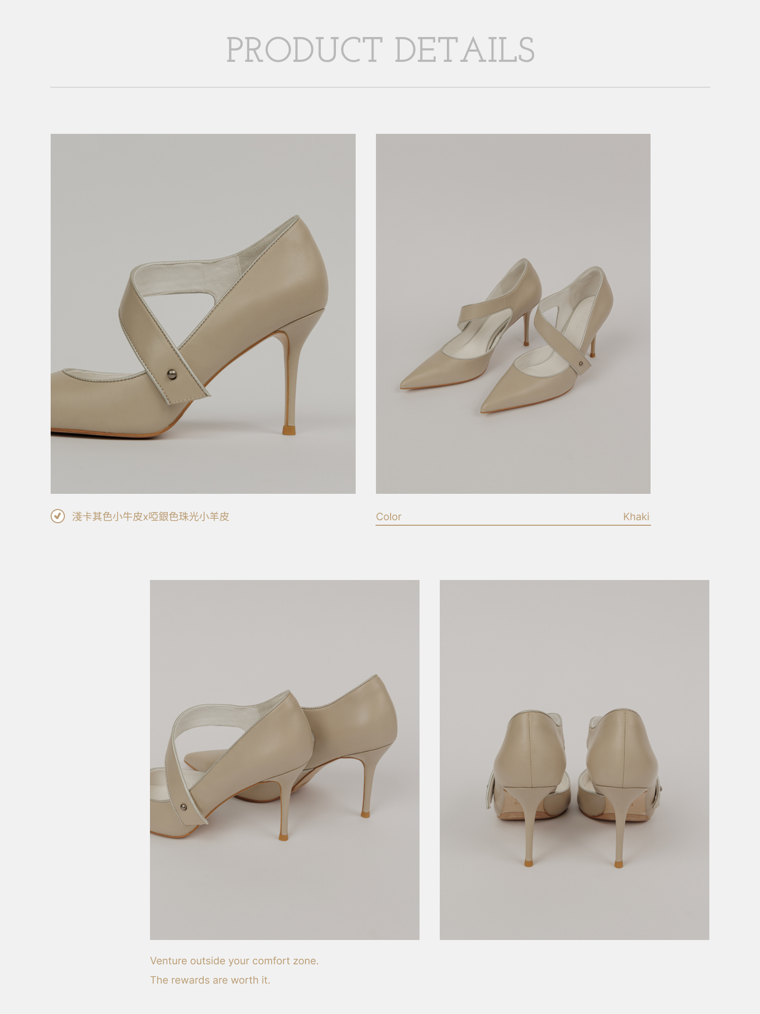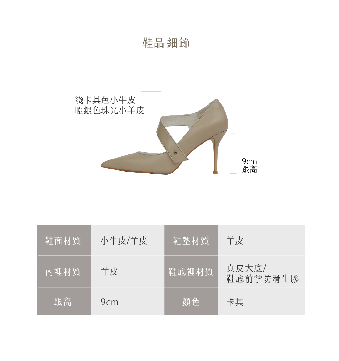卡其色:淺卡其色小牛皮X 啞銀色珠光小羊皮