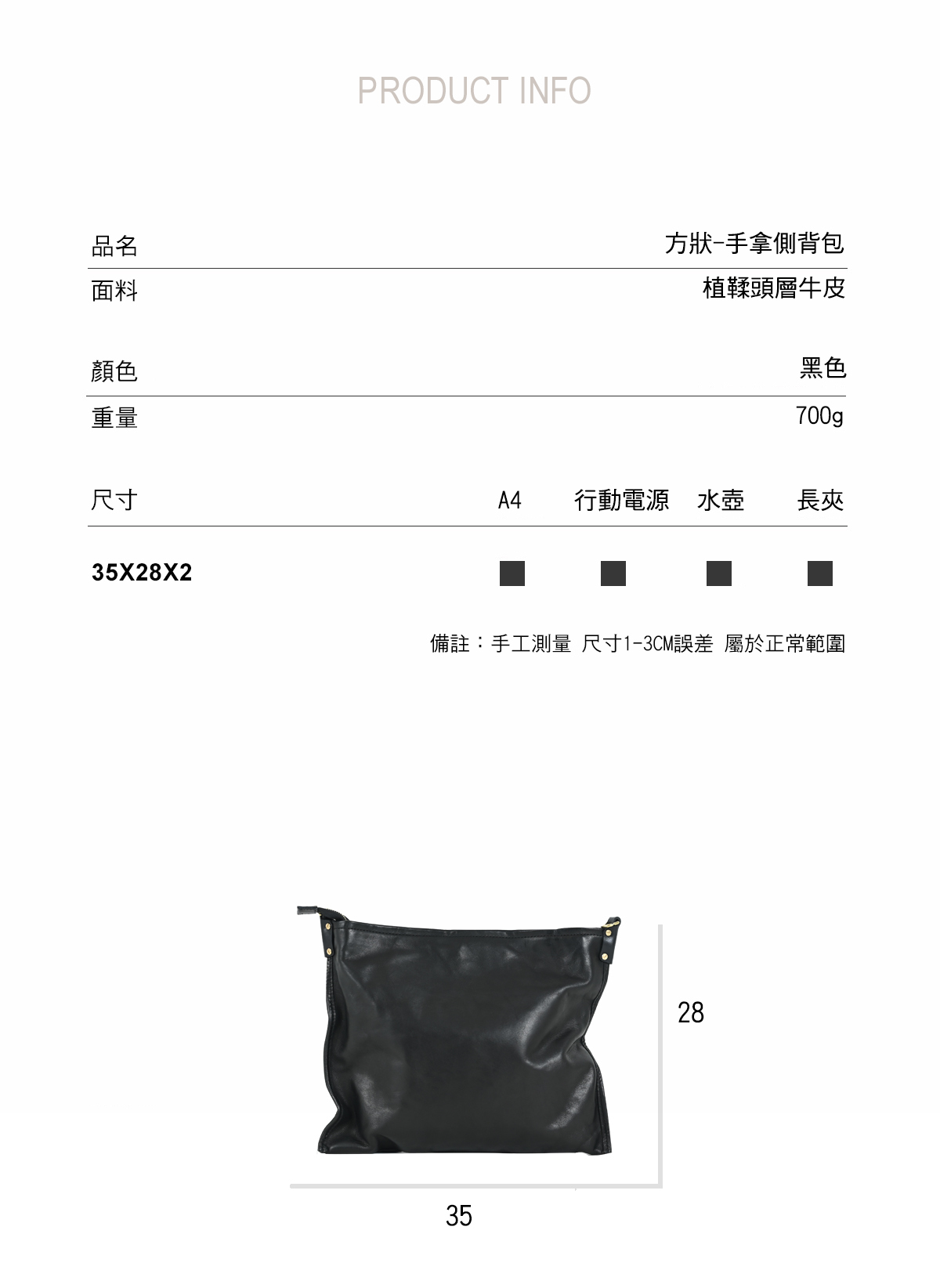 容量建議說明:化妝包/長夾/A4