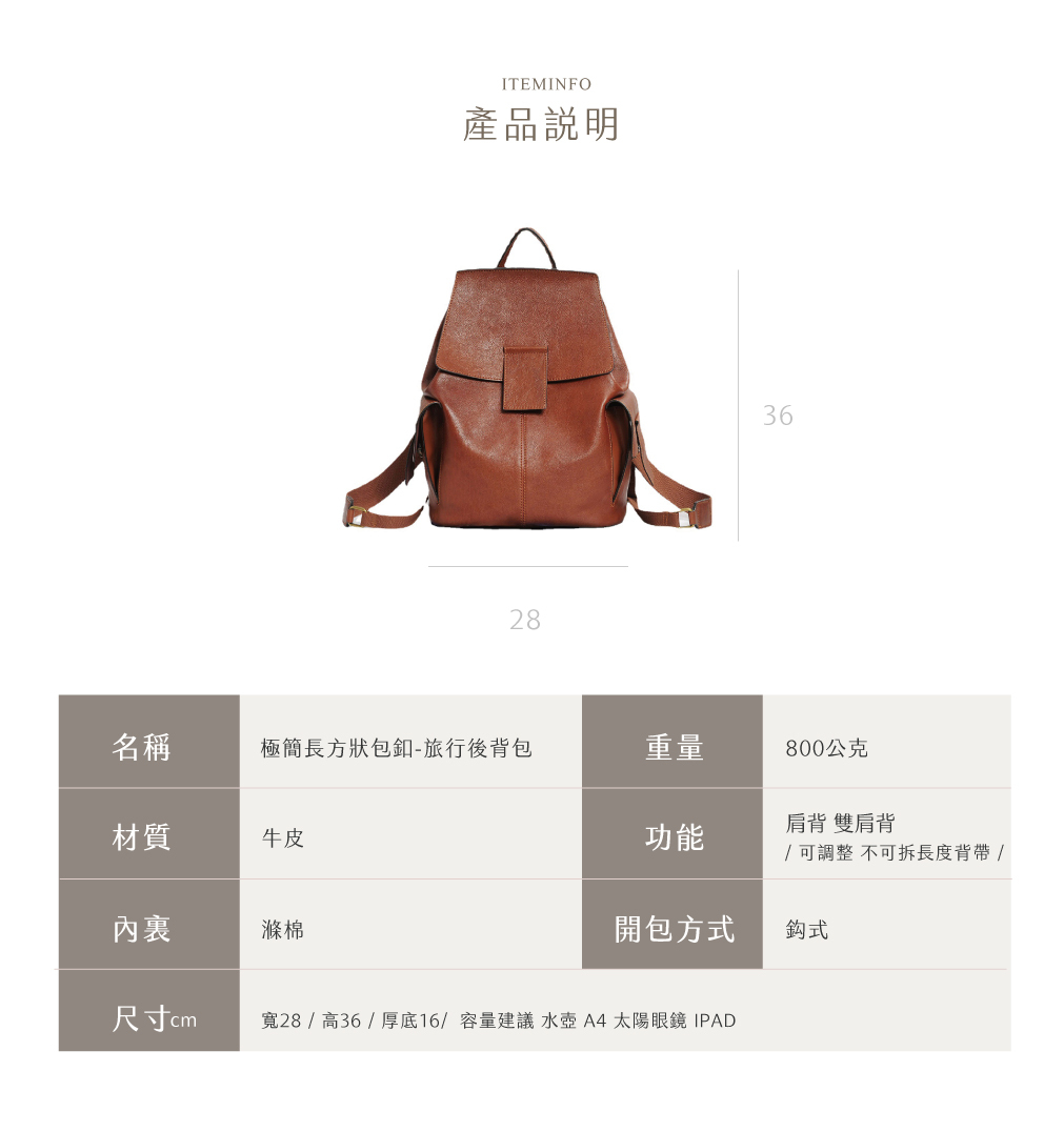 夾層:主要大夾層/包蓋內附小袋口/前後拉鍊大口袋