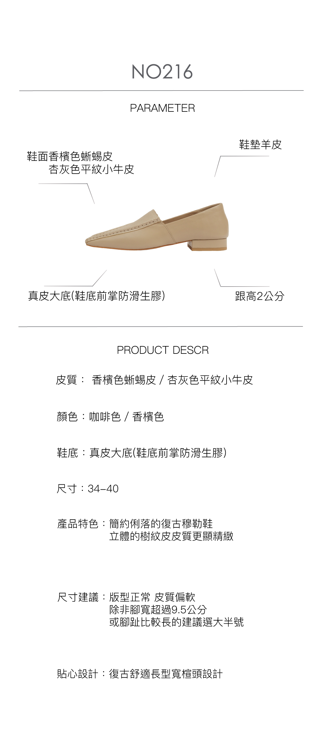 復古舒適長型寬楦頭設計