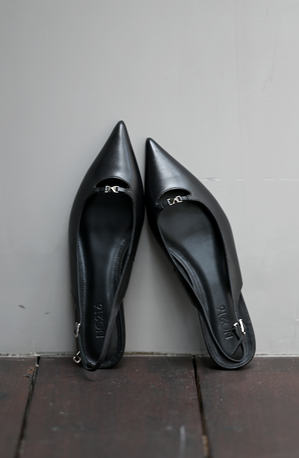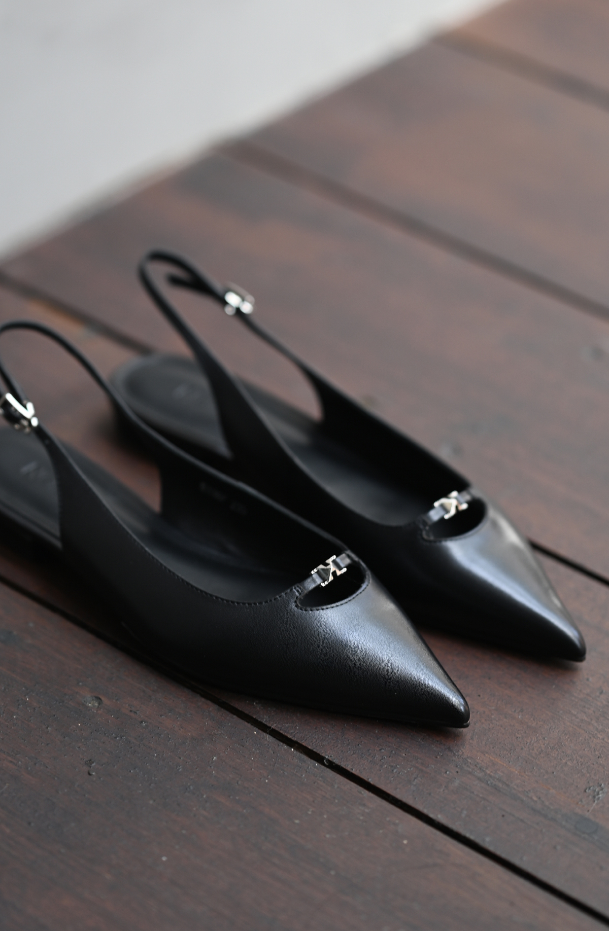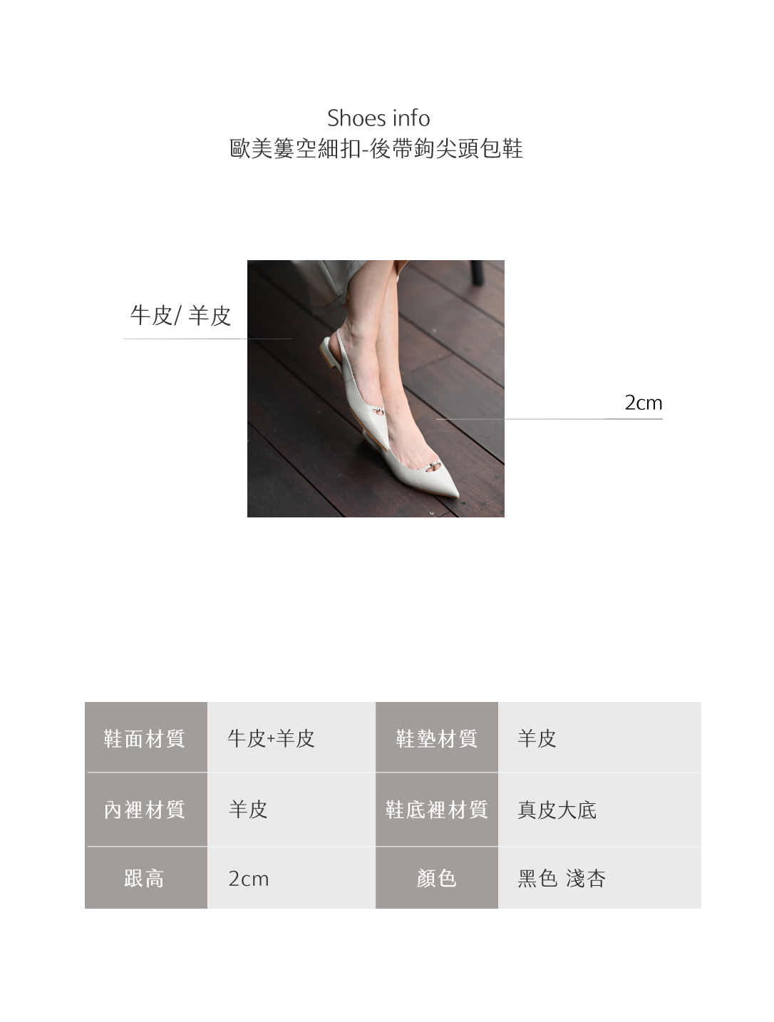 歐美簍空細扣-後帶鉤尖頭包鞋