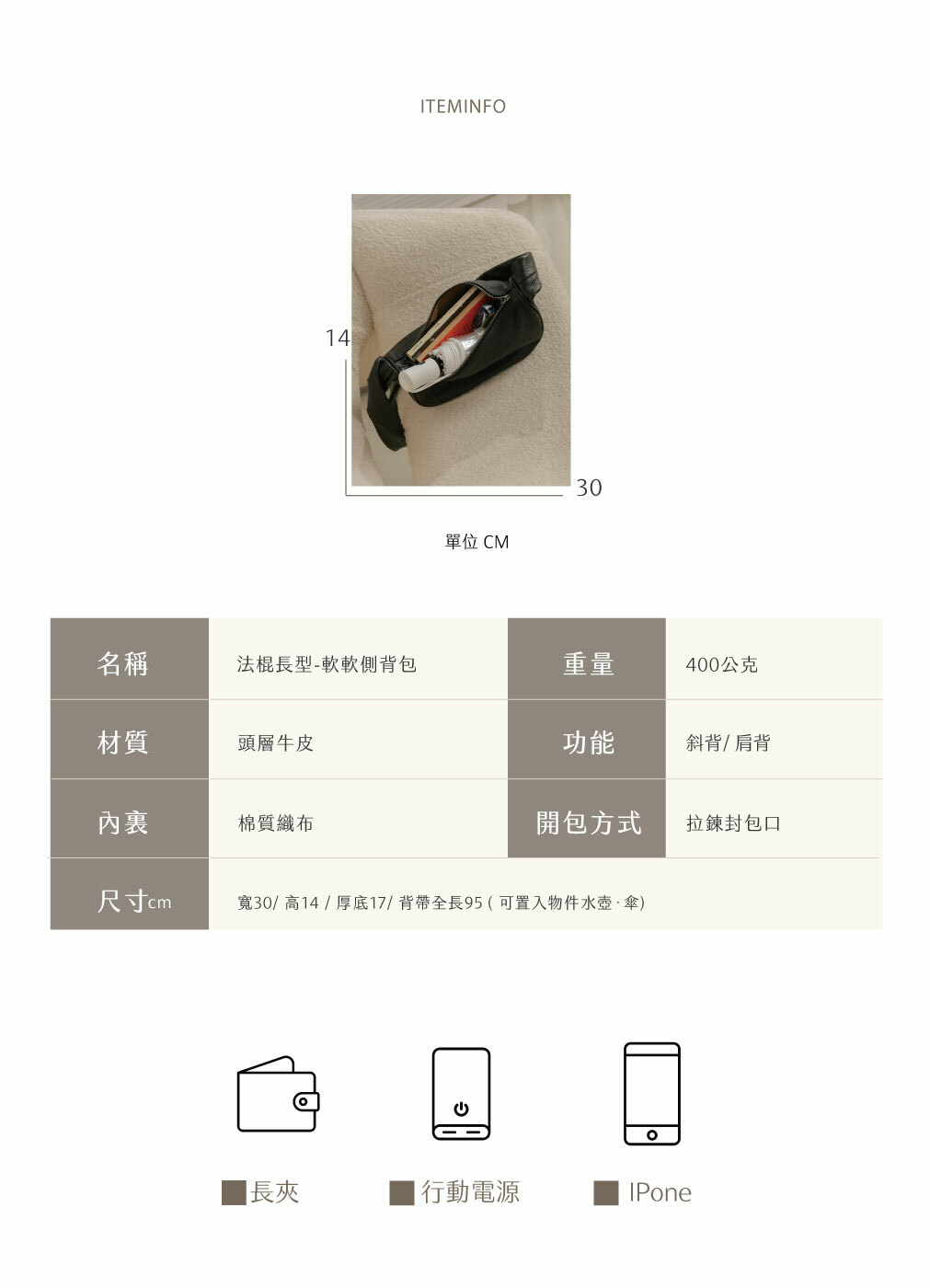 背帶全長95cm夾層:內部一主夾層