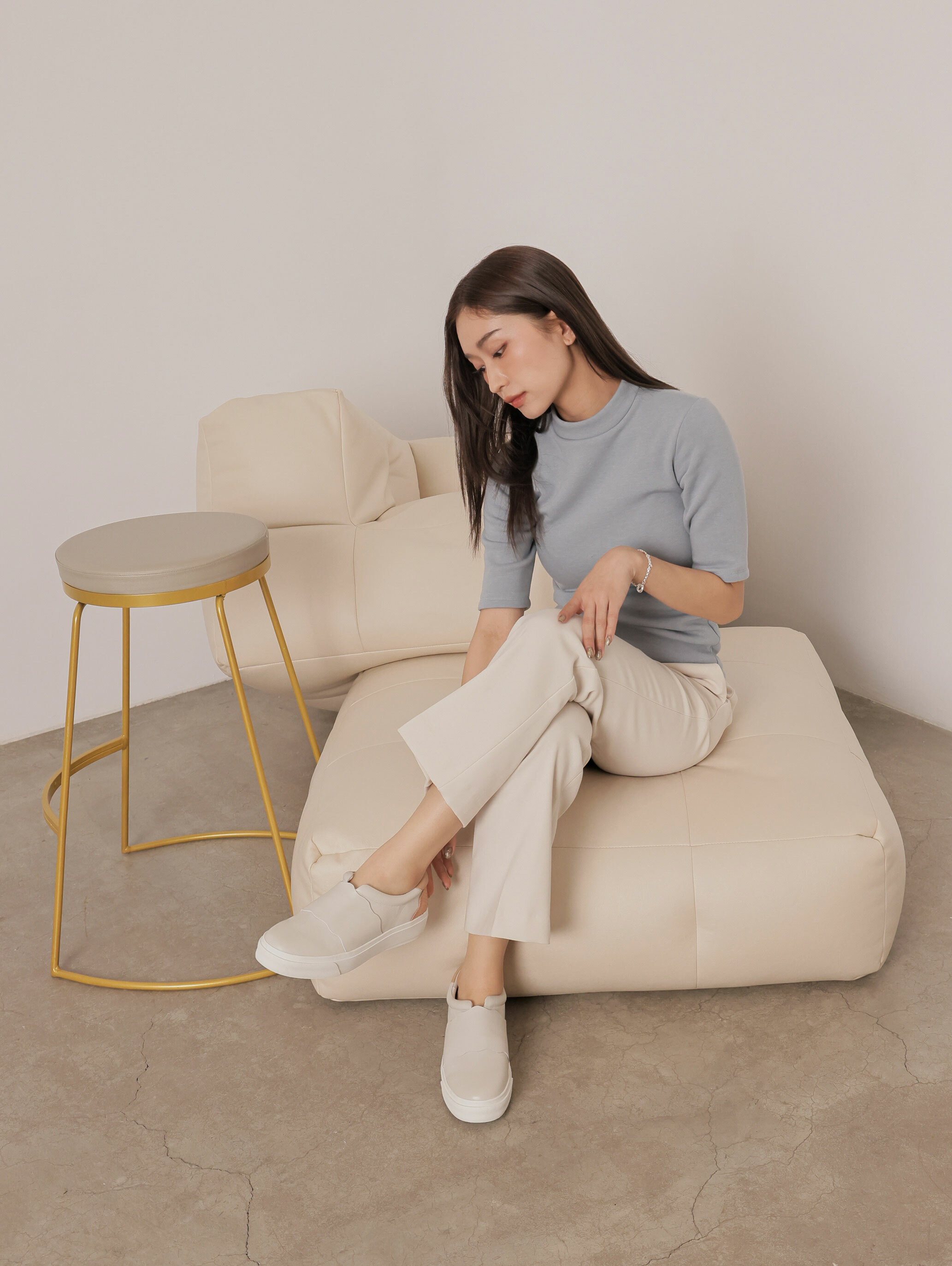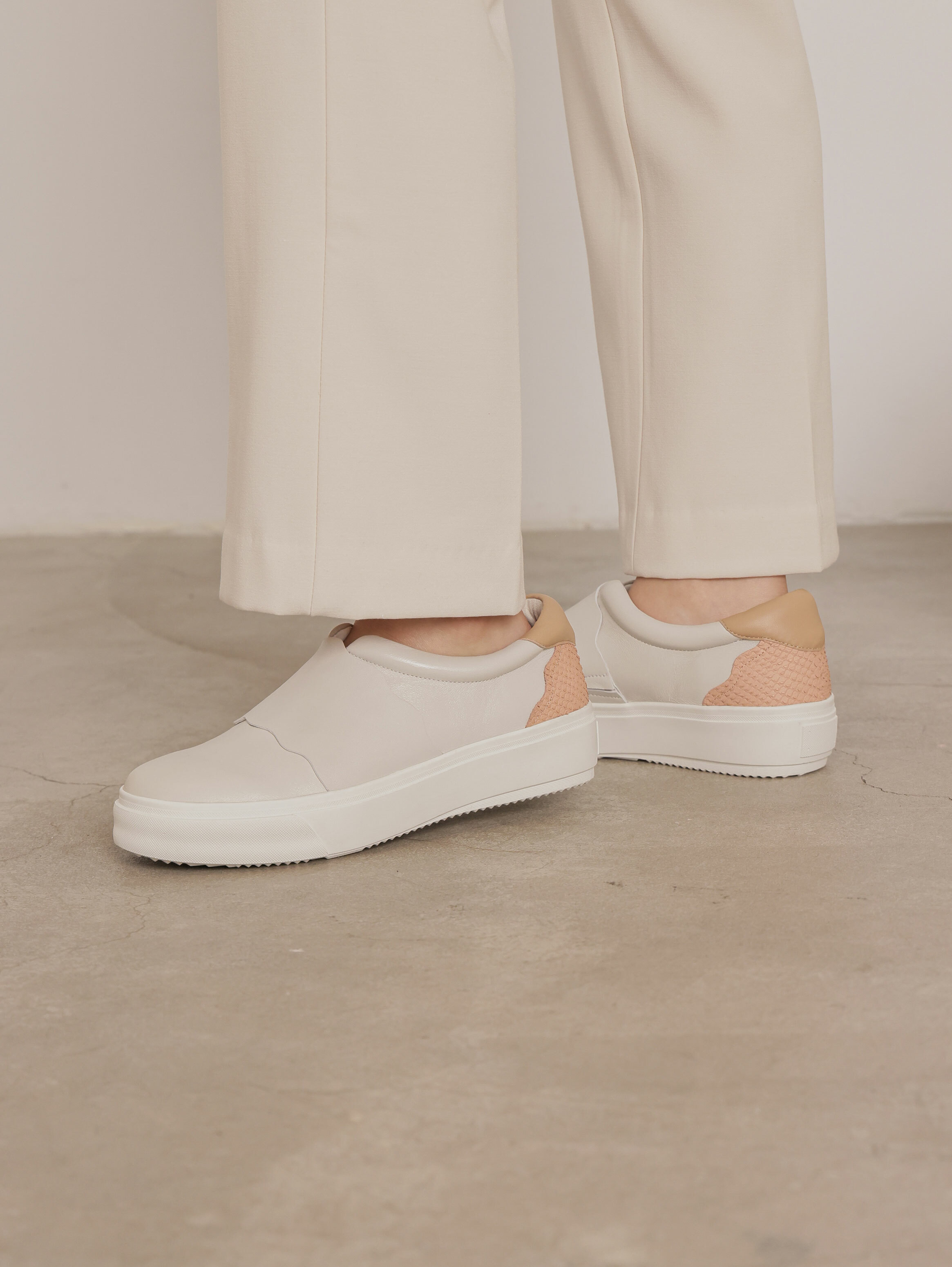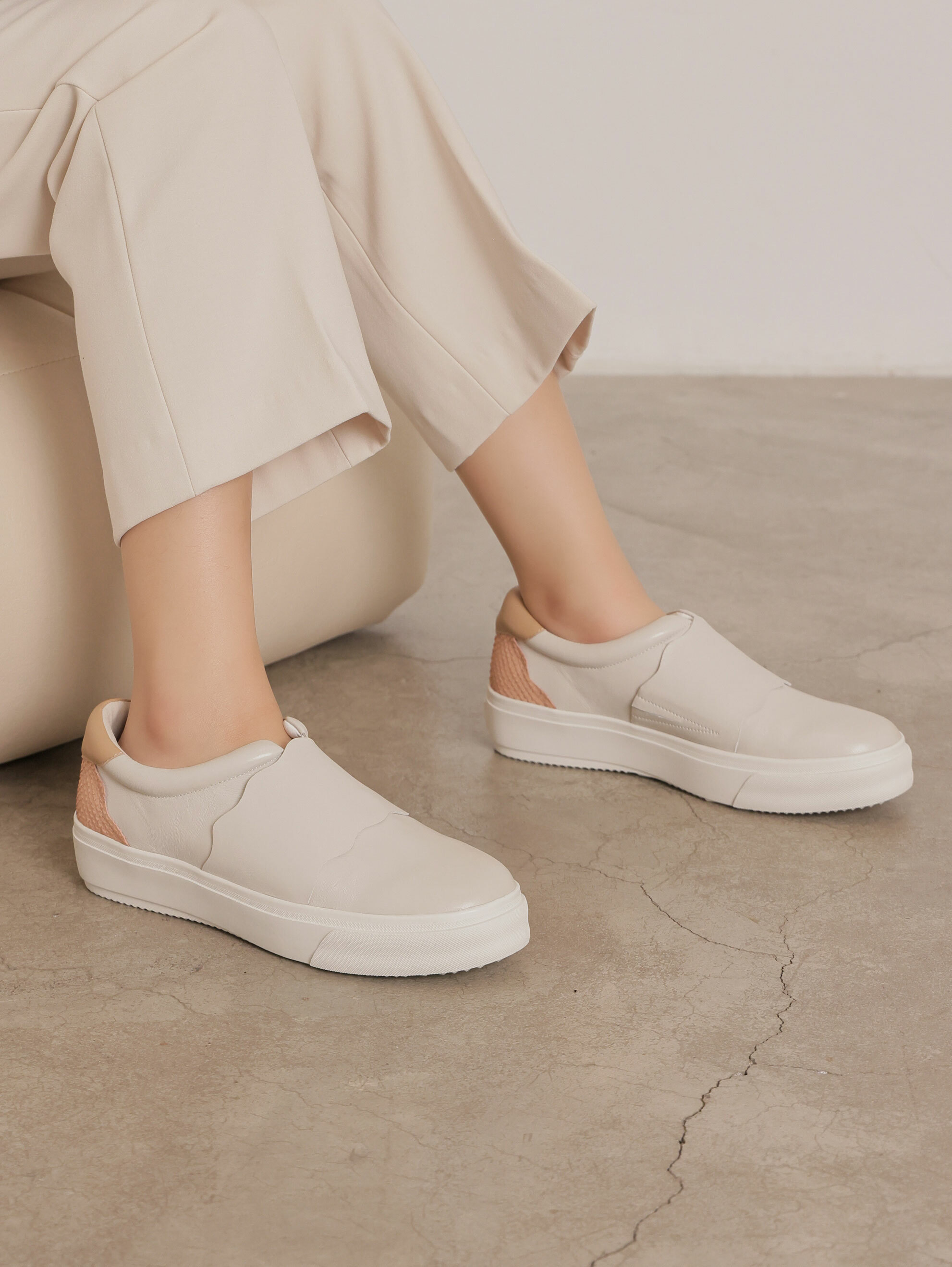 NO216-波狀橫帶-後跟撞色休閒鞋-杏