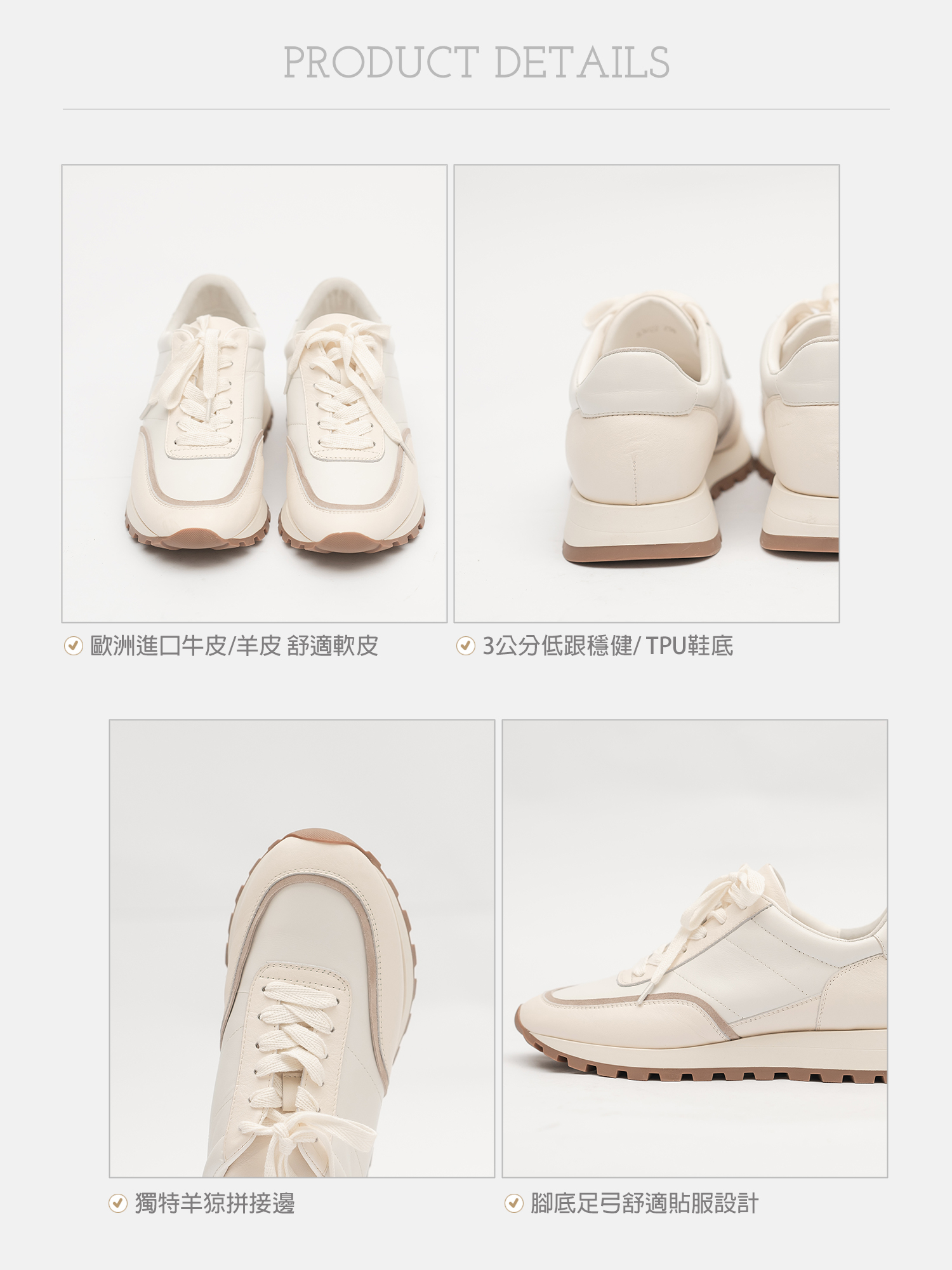 ○歐洲進口羊皮 柔軟延展性高但鞋型不易變形